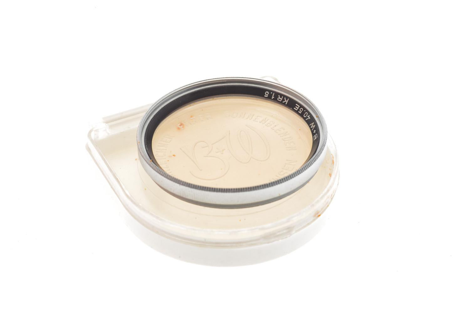 Skylight (light warming) filter for all lenses with 40.5mm filter threads. Silver/black metal construction.