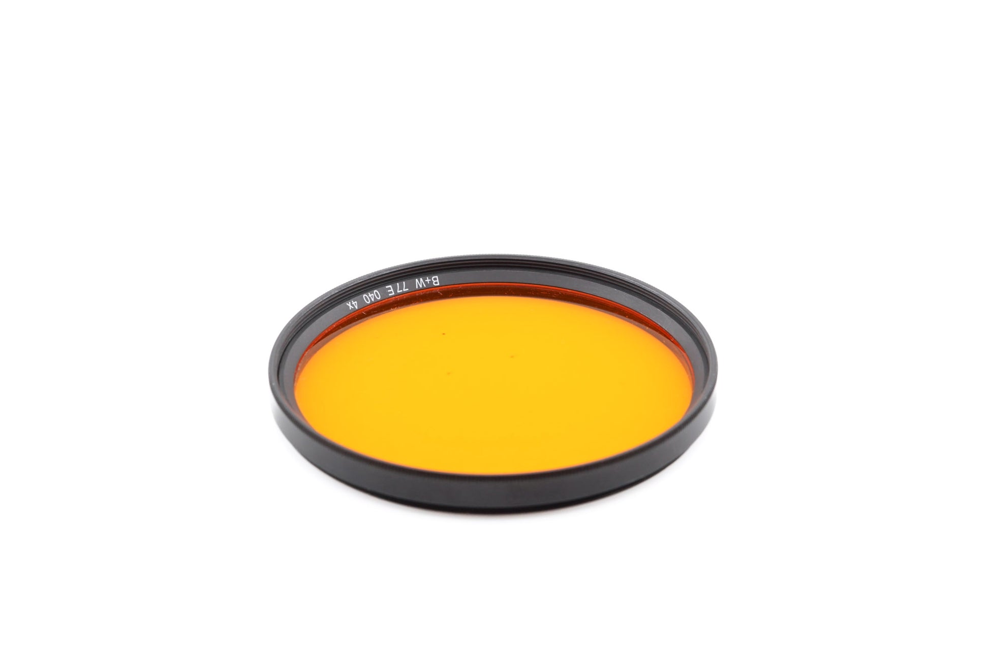 Orange filter made by B+W for all filters with 77mm filter threads. 4x filter factor, so 2 stops of exposure compensation is needed. Metal body available in black.