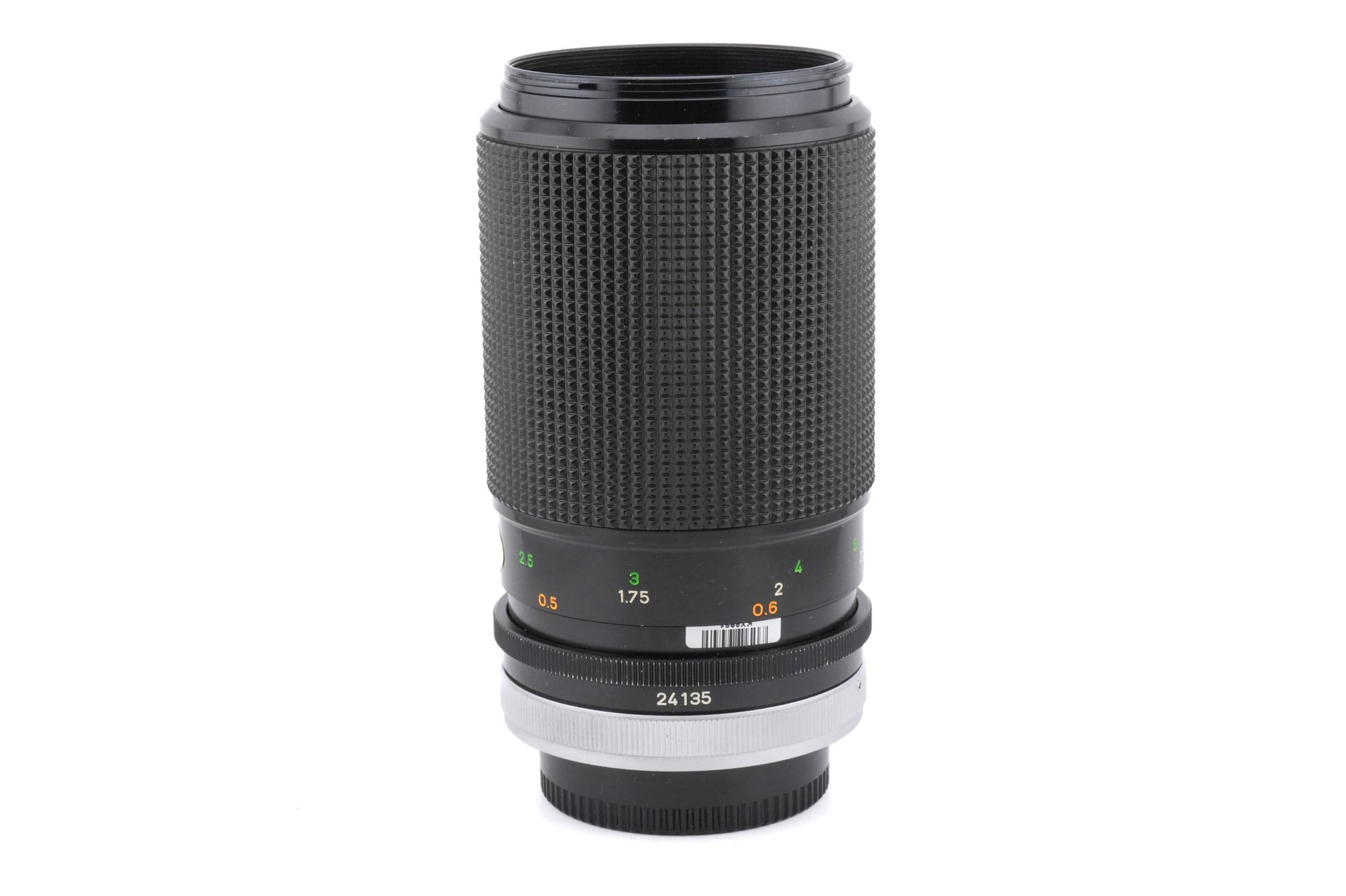 Manual focus telephoto macro lens made for FD-mount 35mm SLR cameras introduced by Canon in 1975. It has a reproduction ratio of 1:2. Plastic/metal body available in black.