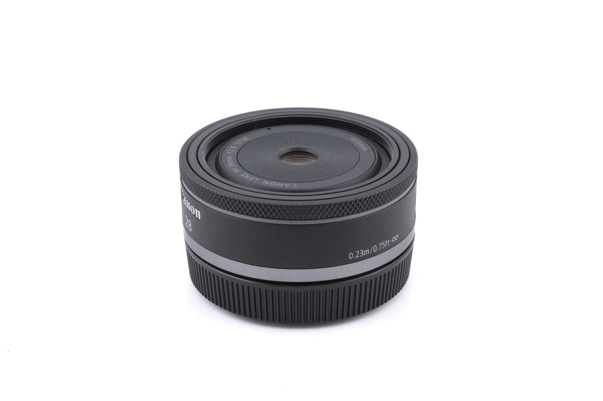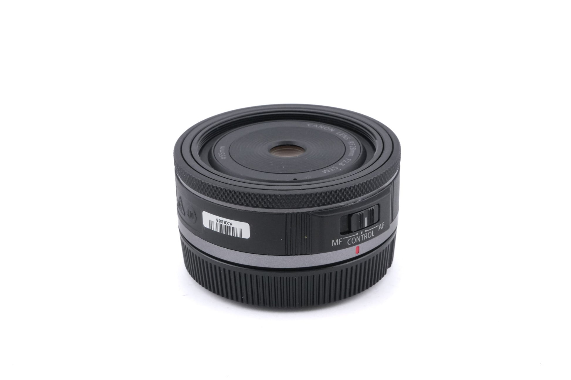 Autofocus wide-angle lens made for RF-mount digital mirrorless cameras introduced by Canon in 2023. It is designed for full-frame sensors but has a 45mm equivalent focal length if mounted on APS-C EF-S-mount cameras. Metal and plastic body available in black.