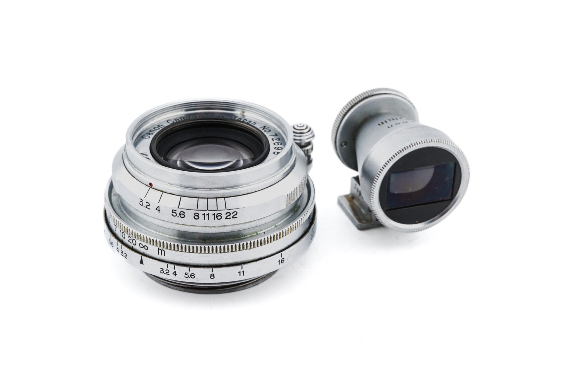 Manual focus wide normal lens made for M39/LTM mount 35mm rangefinder cameras by Canon starting in 1951. Only 7,500 were made before Canon replaced this with a 35mm f2.8 lens that didn't have the Serenar lens name. Metal body available in silver.