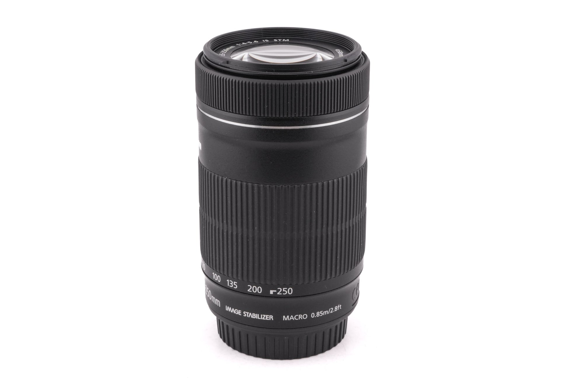 Autofocus telephoto zoom lens made for EF-S mount digital SLRs by Canon. It was made for APS-C-sized sensors and gives the equivalent field of view to an 82.5-375mm lens on full frame/35mm. It uses a stepping motor (STM) for faster, quieter autofocus and a built-in image stabilization (IS) system. Plastic body available in black.