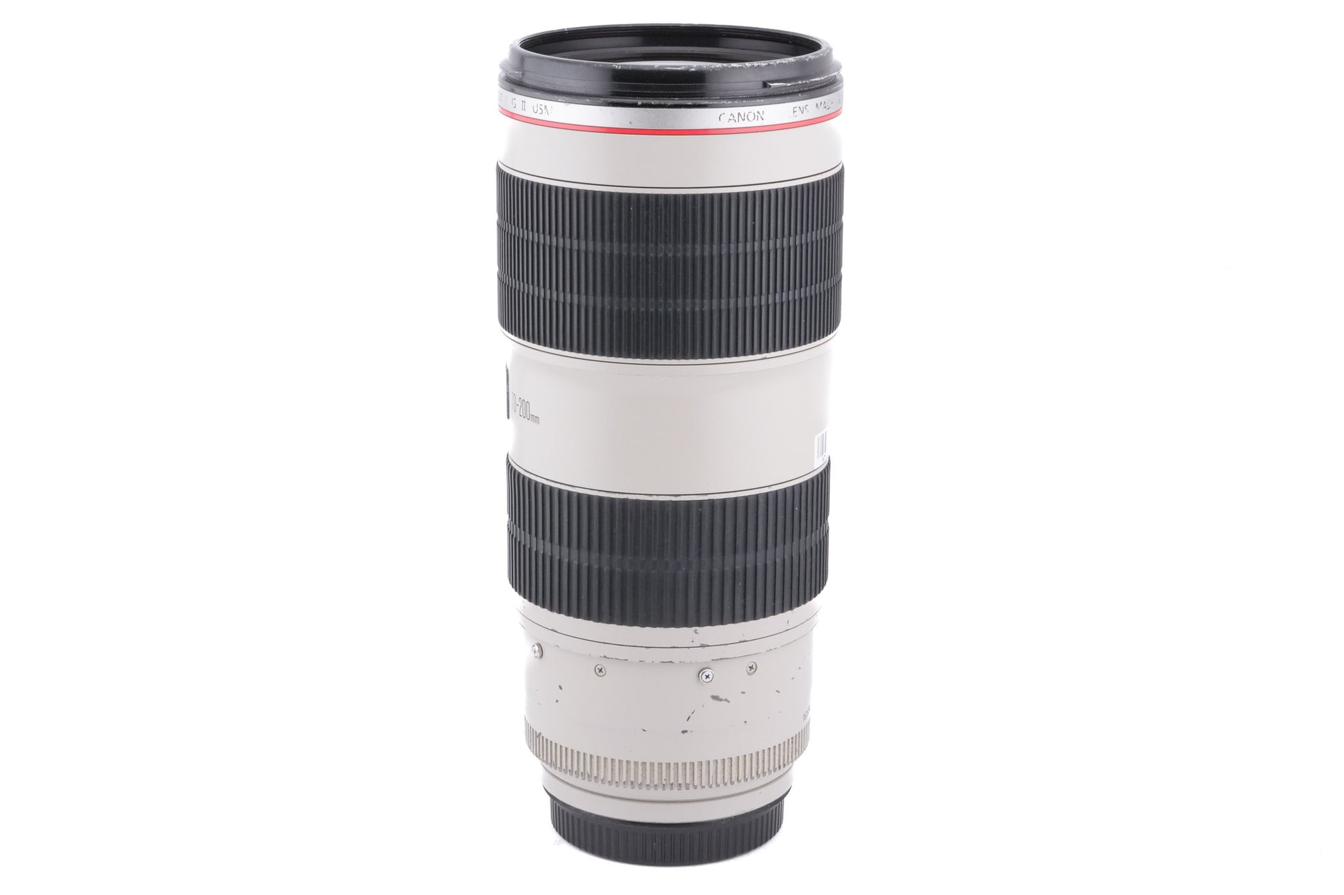 Autofocus telephoto zoom lens made for EF-mount SLR cameras by Canon starting in 2012. It is part of their L series of professional lenses and features a weather-sealing gasket. The lens features an updated image stabilization (IS) system offering four stops of stabilizing power as well as Canon's ultrasonic focusing motor (USM) for autofocus. Metal and plastic body available in beige.