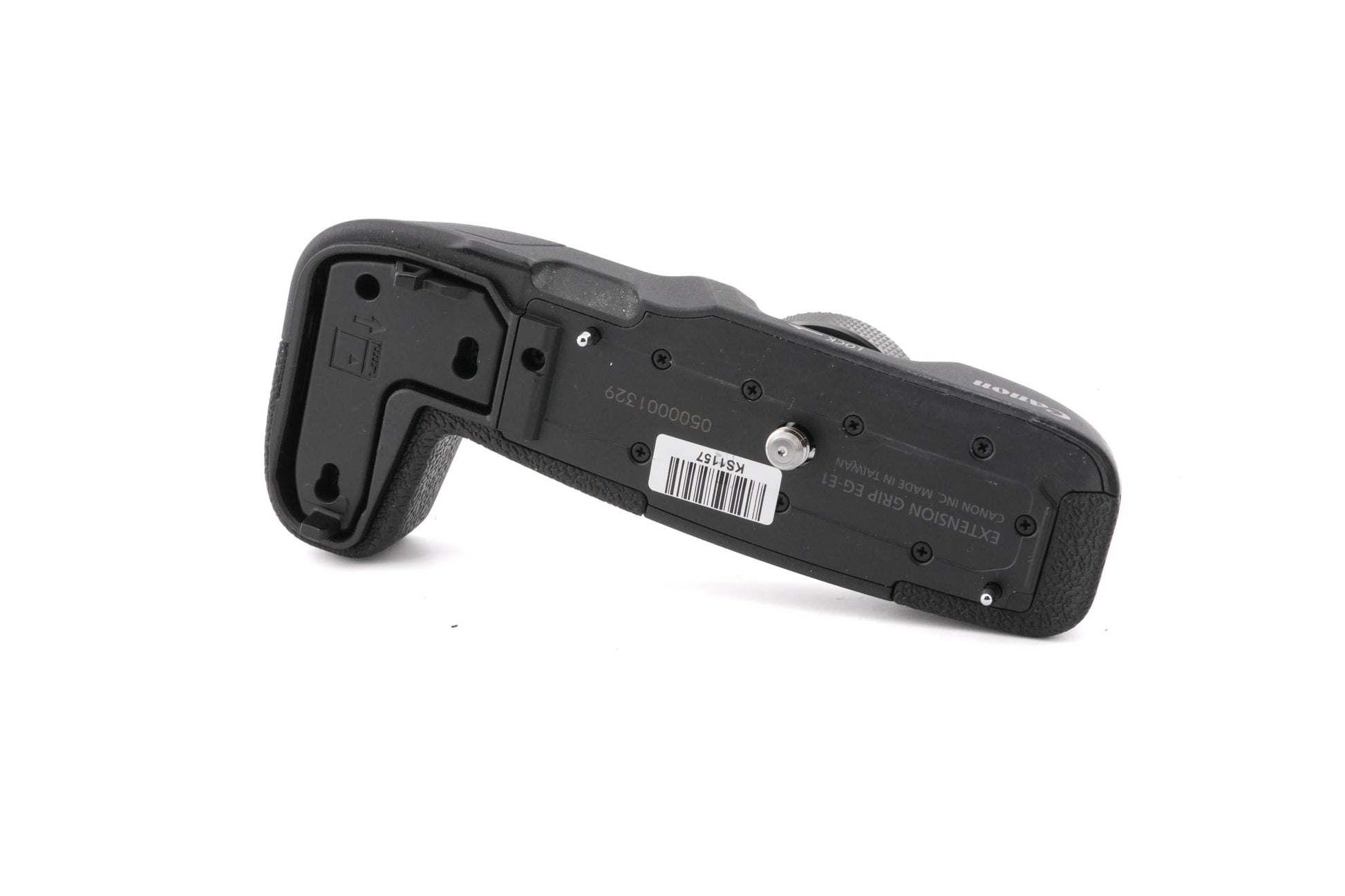 Extension grip made for R-mount digital mirrorless cameras by Canon. It fits the EOS RP specifically. It doesn't add any electronic functionality but slightly extends the bottom grip, possibly making the camera more comfortable to hold. Putting it on the camera requires removing the camera's battery door. Plastic body available in black.