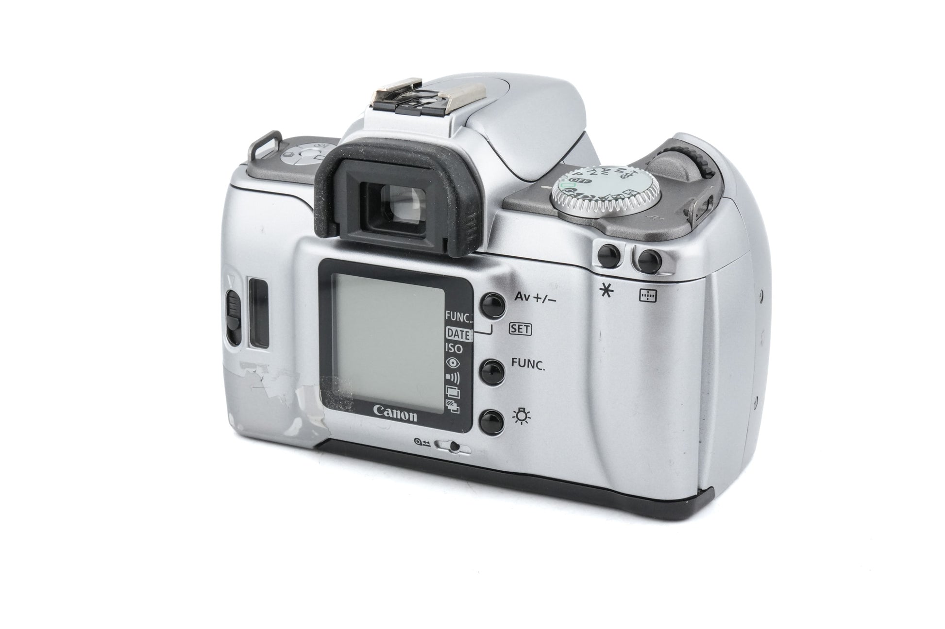 Autofocus EF-mount 35mm SLR released by Canon in 2002. It is also known as the EOS Kiss 5 (JP) and Rebel Ti (NA). Plastic body available in silver.