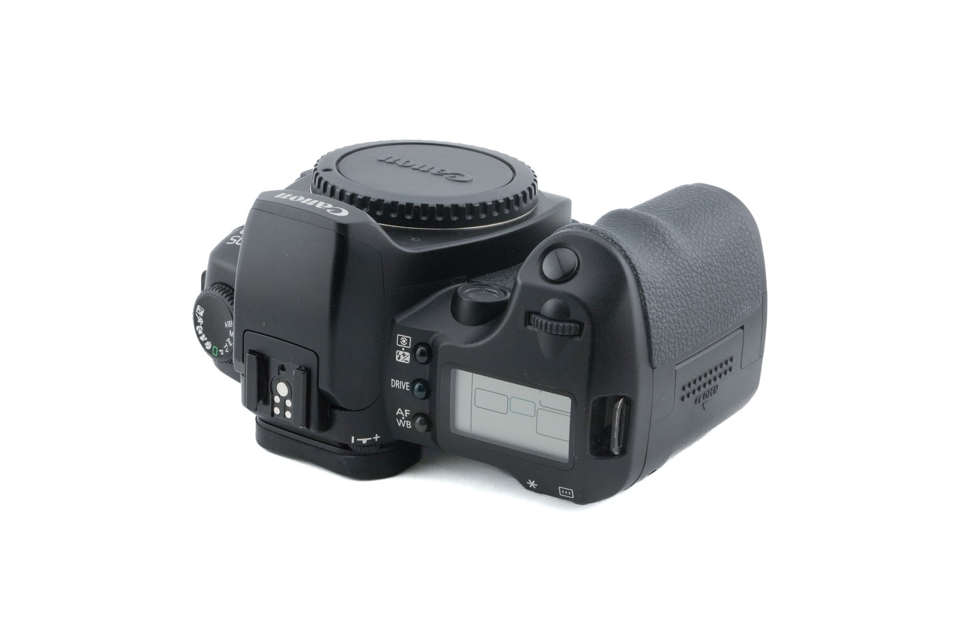 Autofocus EF-mount digital SLR camera released by Canon in 2000. This body is not compatible with EF-S lenses despite having an APS-C-sized sensor. It uses CF cards for storage. Plastic body available in black.