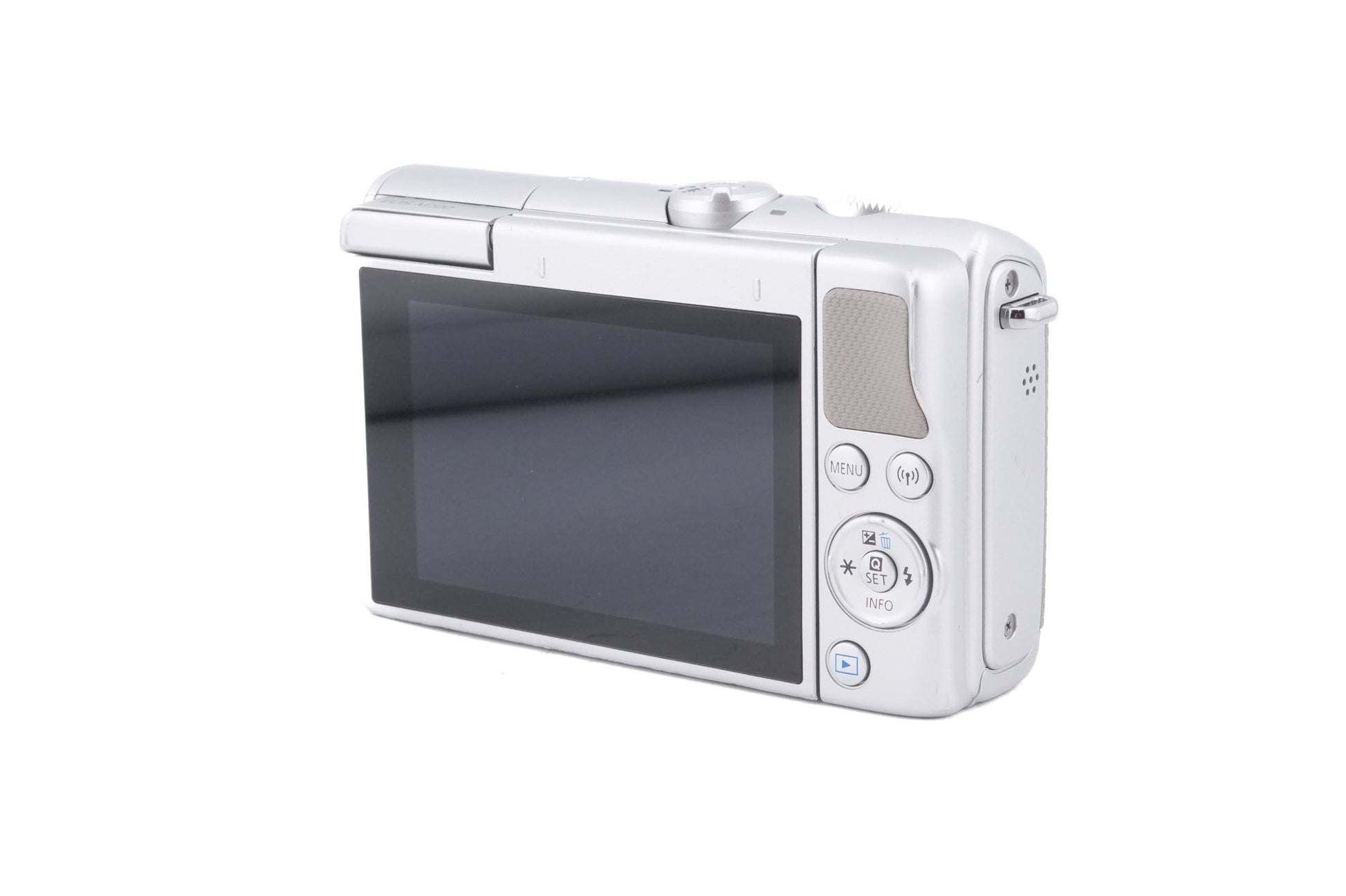 Autofocus digital mirrorless camera released by Canon in 2017 utilizing the EF-M mount lenses. The M100 features Canon's dual-pixel autofocus and a Digic 7 processor. Plastic body available in black or silver with either grey or white leatherette.