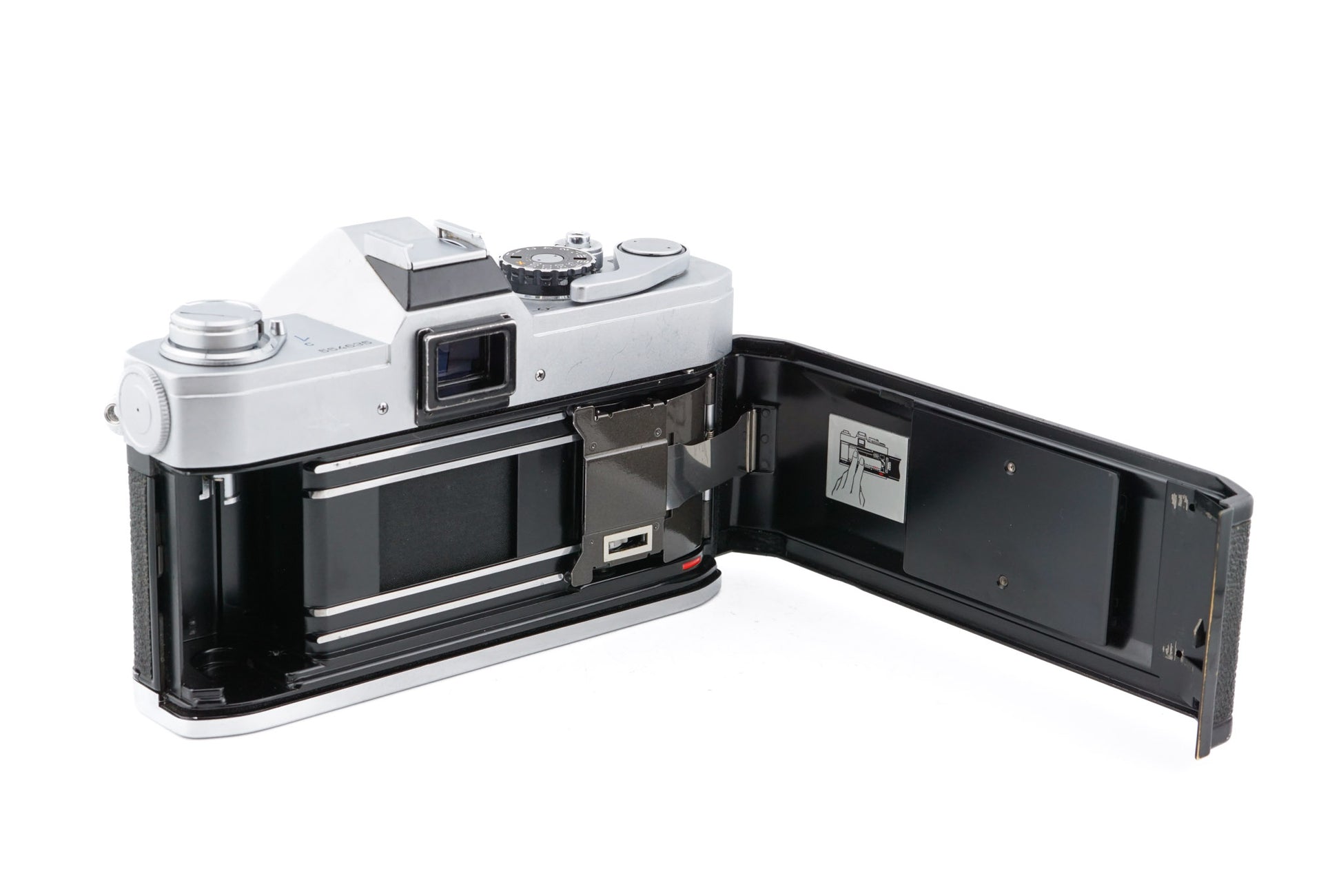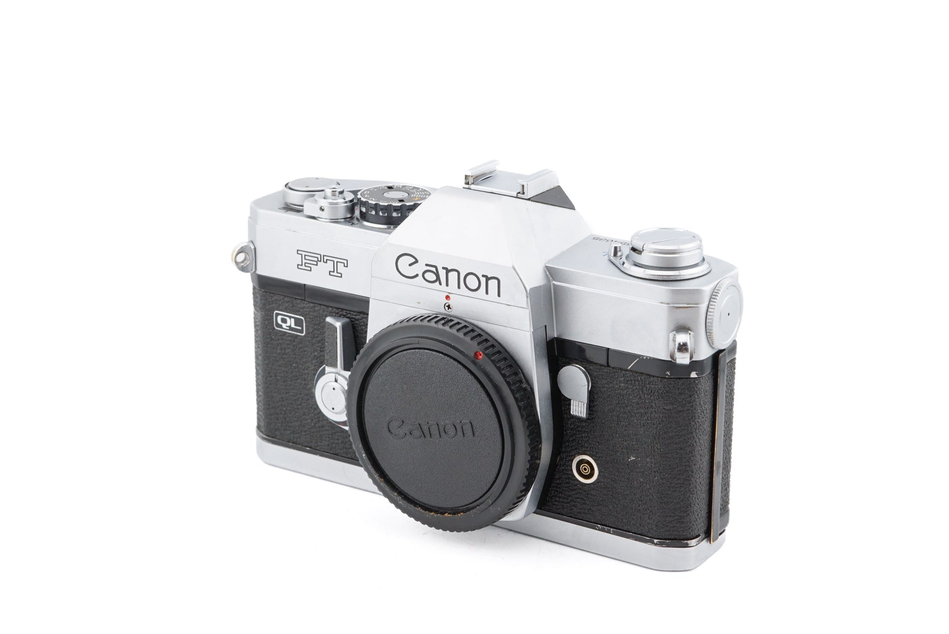 35mm manual focus Canon FL mount SLR camera released by Canon in 1966. Metal body available in black & silver.
