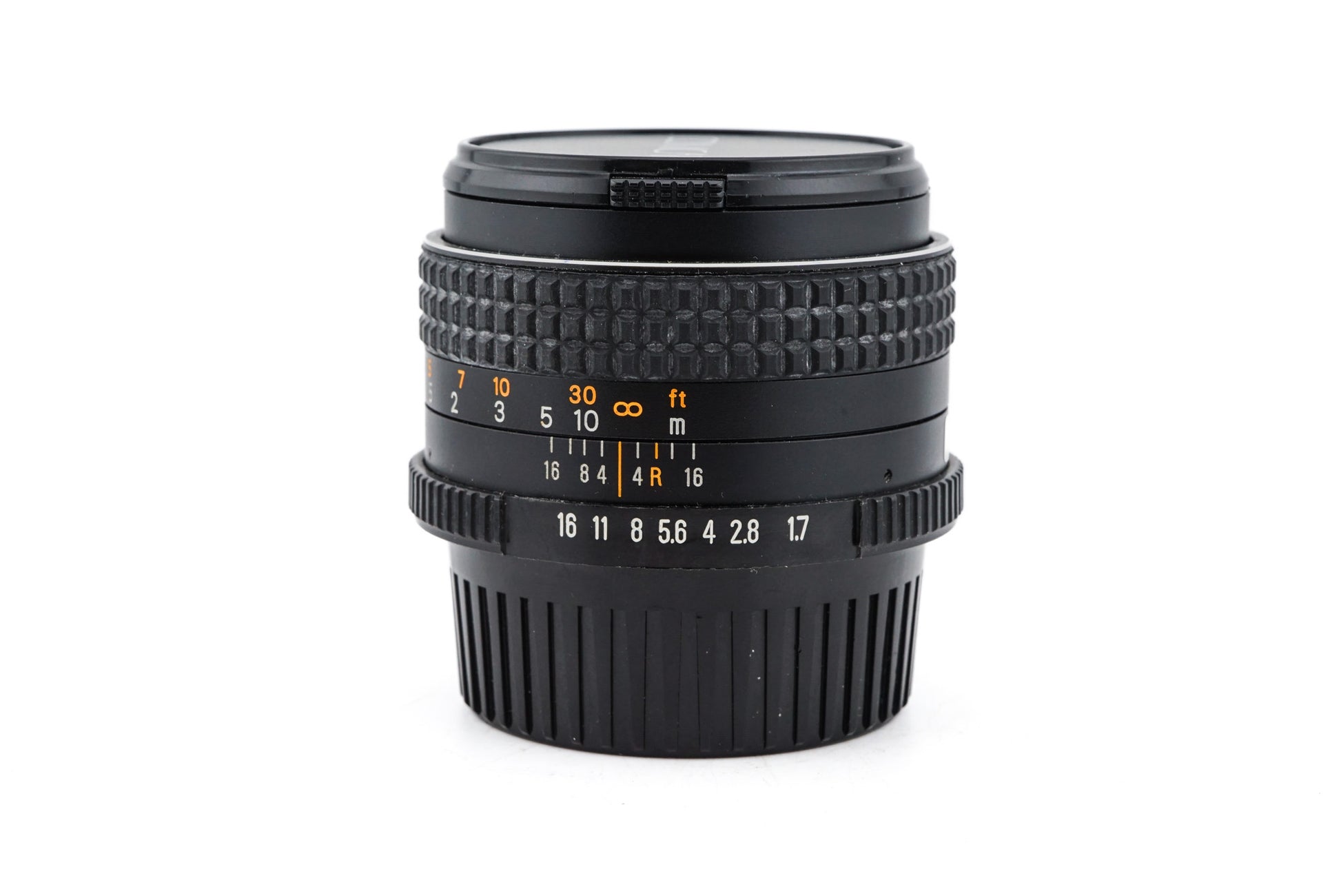 Manual focus normal lens made for Pentax K mount 35mm SLRs by Carena. Metal body available in black.