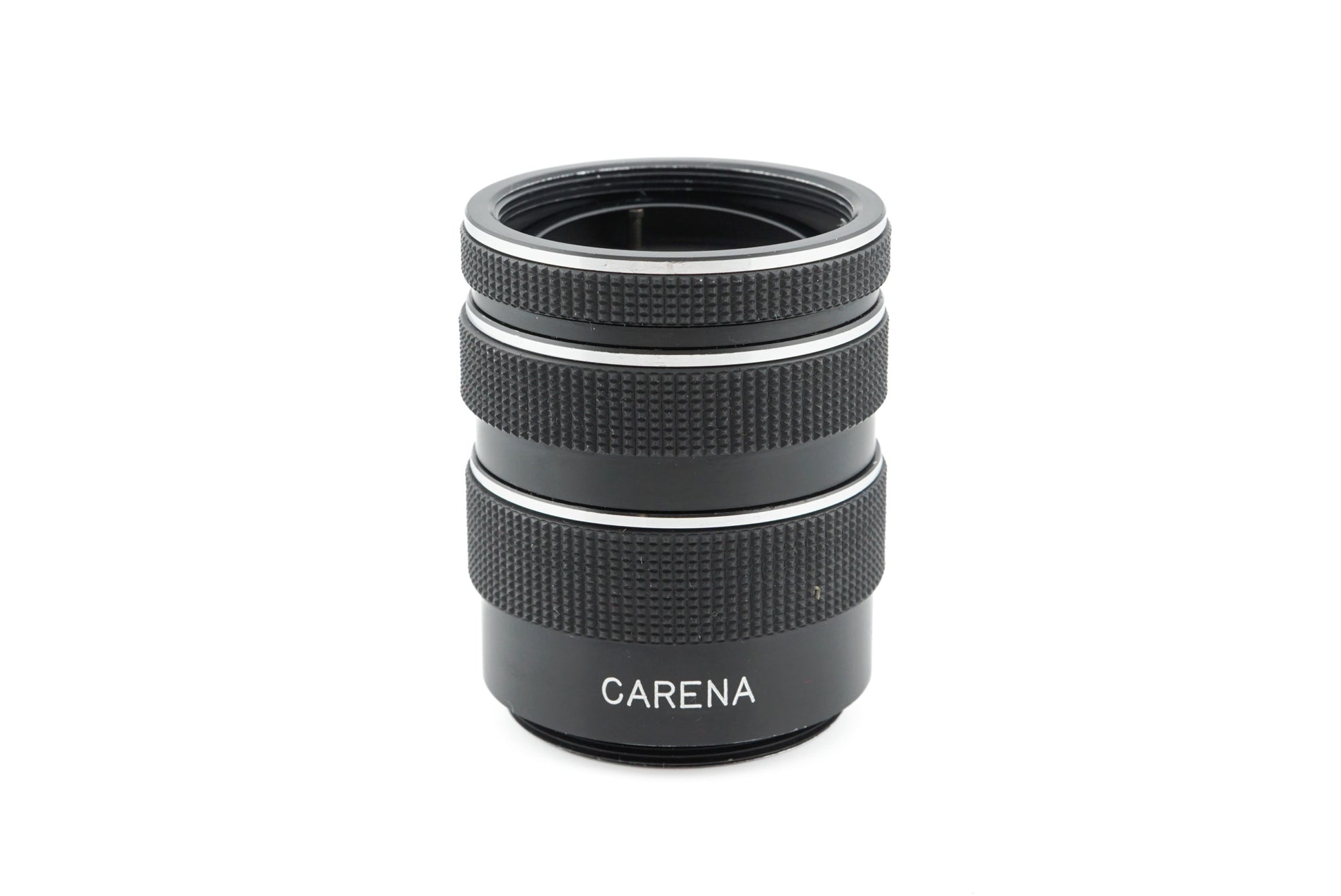 Set of extension tubes made for M42 screw mount 35mm SLR cameras introduced by Carena. It consists of three tubes: 11mm , 19mm, and 29mm. They have an aperture stop-down pin. Metal body available in black.