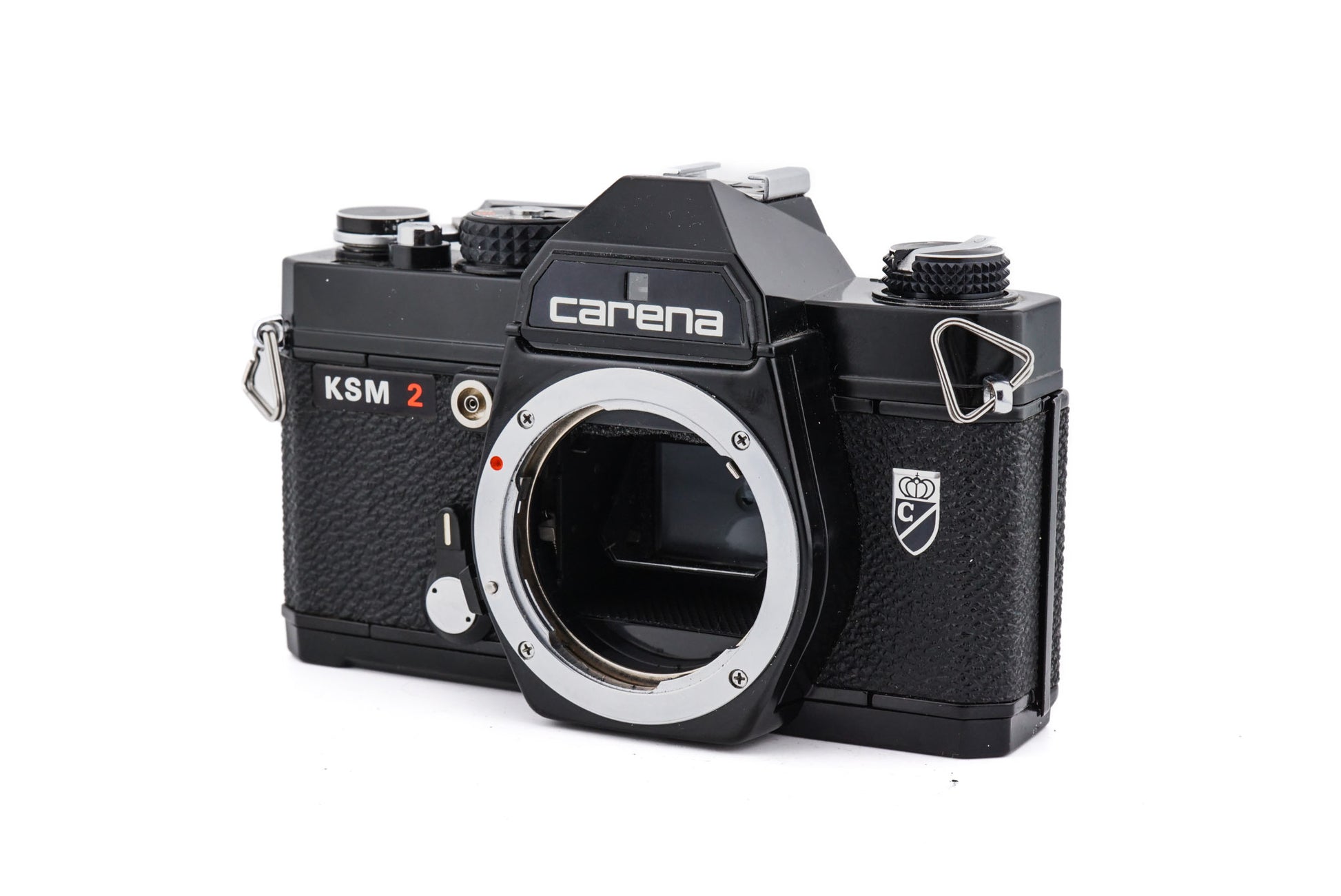 Manual focus Pentax K-mount 35mm SLR camera made by Carena. Metal construction available in black.