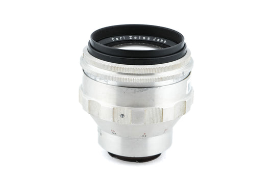 Manual focus short-telephoto lens for Exakta-mount 35mm SLR cameras made by Carl Zeiss. Metal construction available in silver.