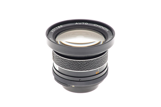 Manual focus wide angle prime lens made for M42 mount SLR cameras by Chinon. Some models have "Auto Chinon" written on the name ring instead of "Auto Tomioka". Has in-between apeture stops. A/M switch. Metal body available in black.
