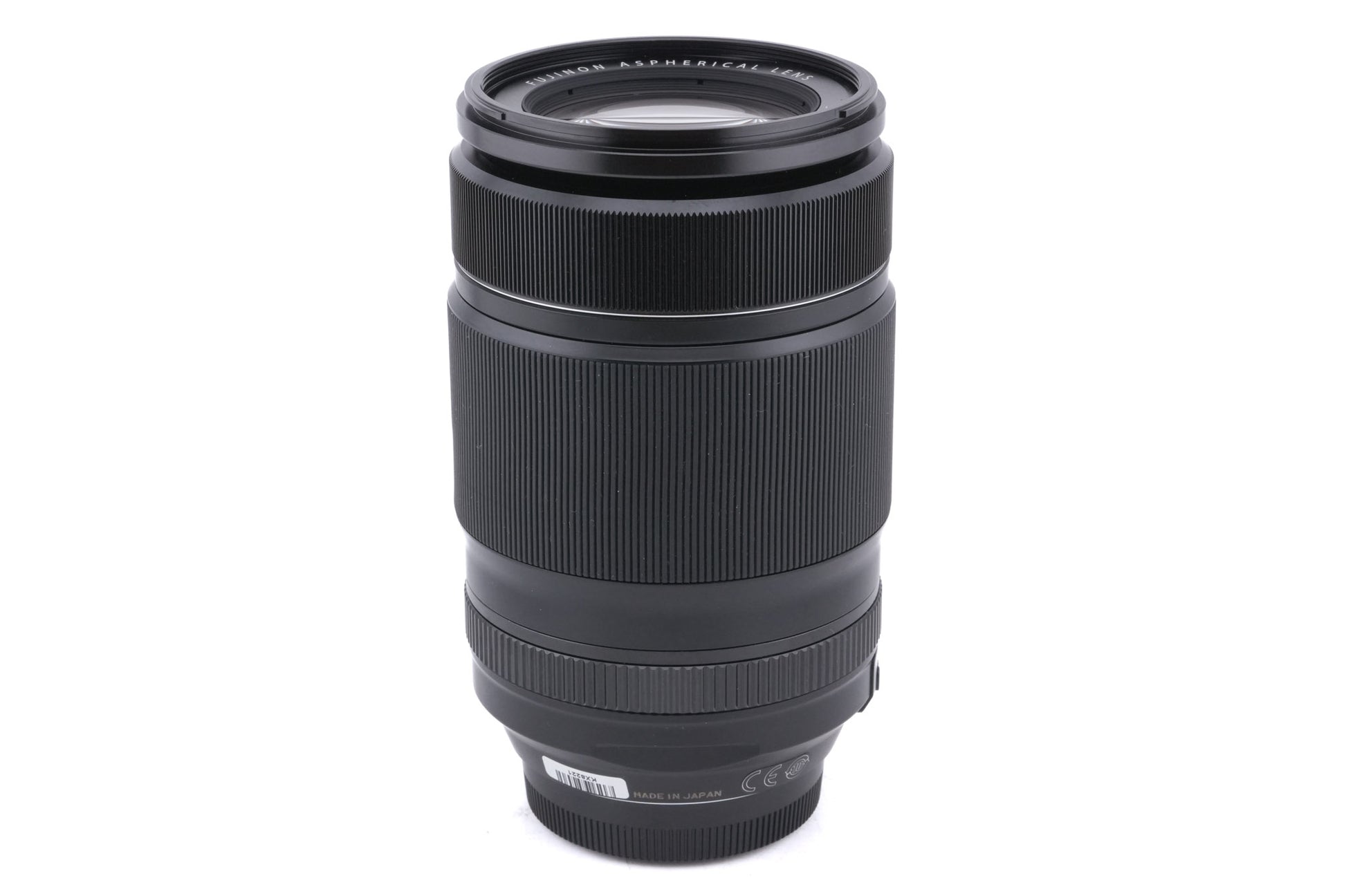 Autofocus telephoto zoom lens made for X-mount digital mirrorless cameras by Fujifilm. It's designed for APS-C-sized sensors and gives the equivalent field of view to an 82.5-300mm lens on full frame/35mm. The lens features an image stabilizer (OIS), an aperture ring (R), and a linear motor (LM) for autofocus. Metal and plastic body available in black.