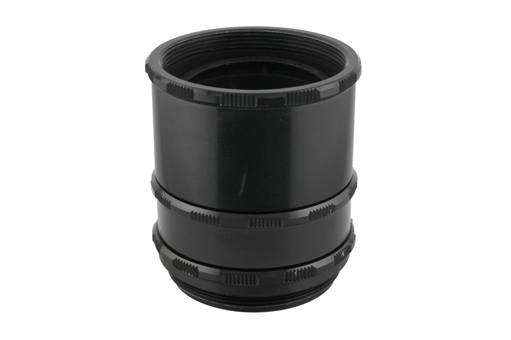 Extension tube set made for M42 screw mount SLRs. No automatic aperture control pass through, so aperture must be controlled manually. Different body styles & shapes.