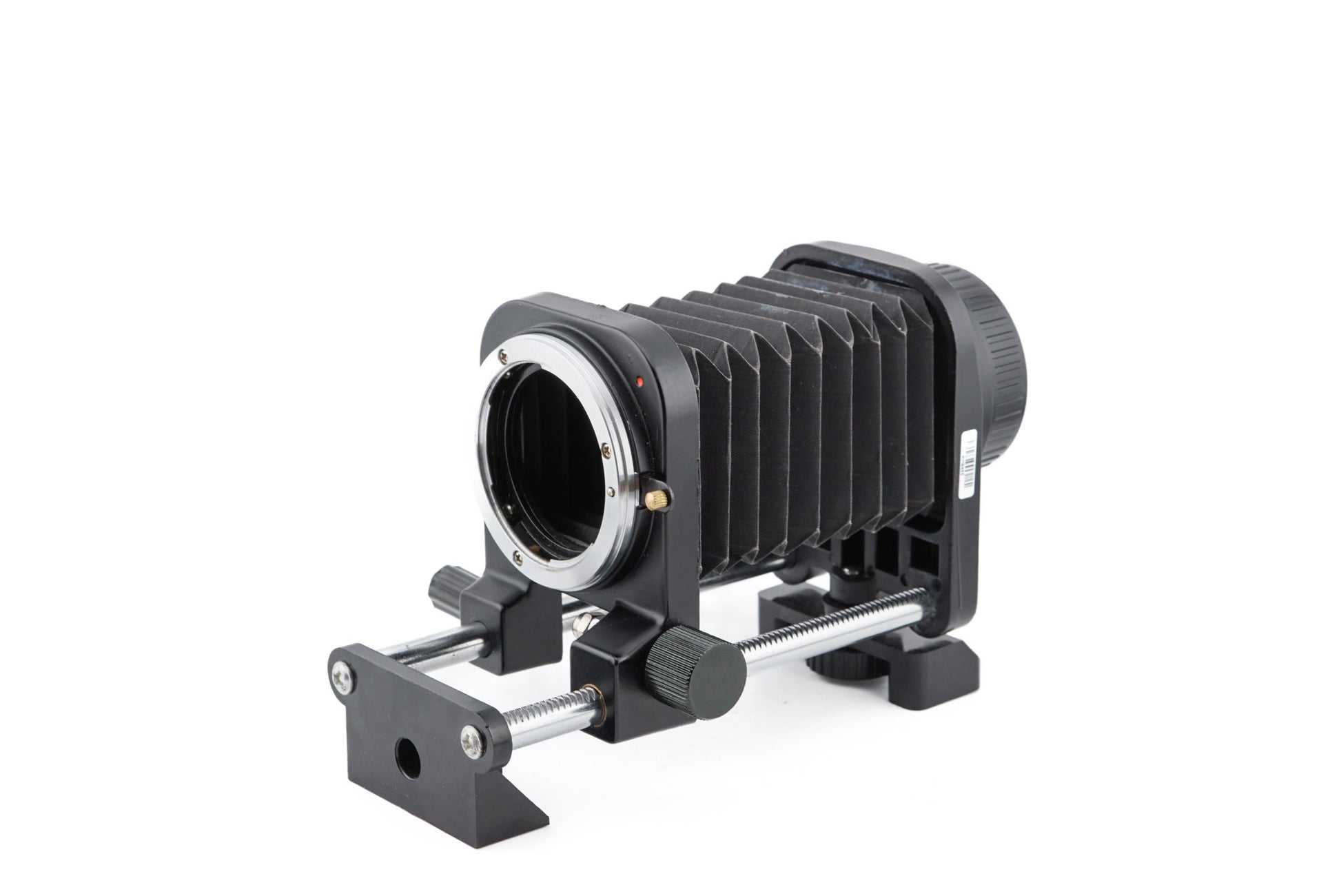 Generic bellows extension for Nikon F mount. Does not transfer aperture information from the lens to the body. Metal construction.