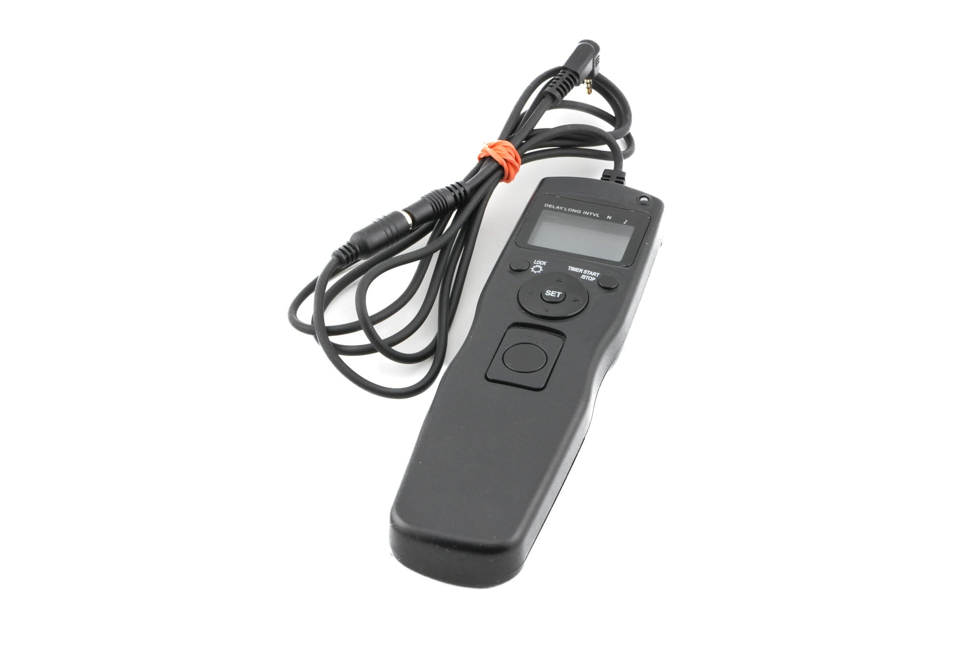 Generic Timer Remote Switch for Canon EF and Pentax K DSLR bodys. Has a Lock button, Timer start/stop button, Set button and Hold button. Body is black plastic.