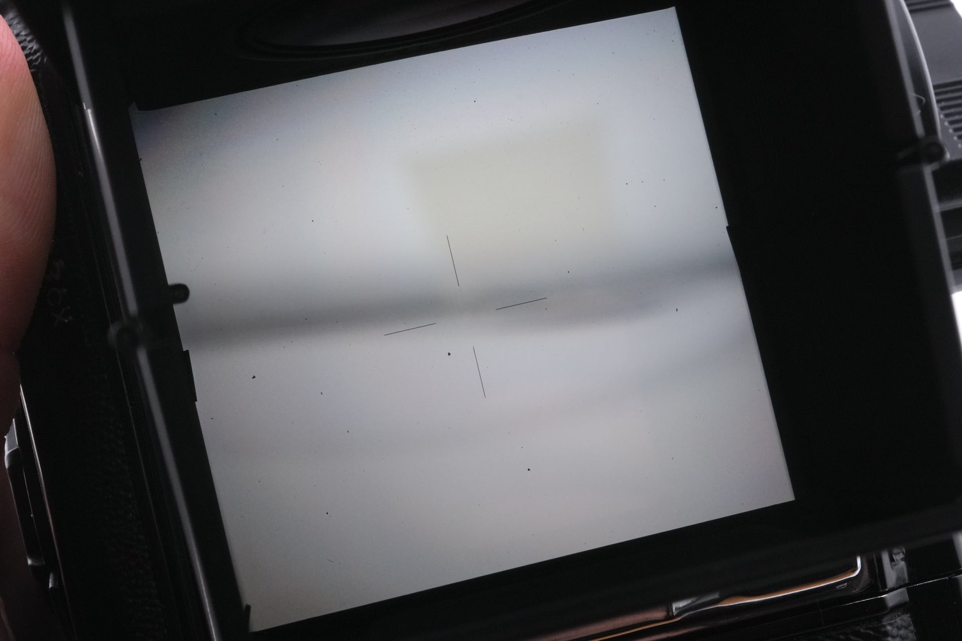 Focusing screen made for V series 120 SLRs by Hasselblad starting in 1989. Like other Acute Matte screens, this one was produced under contract by Minolta. It has a standard four-line crosshair. Metal body available in silver.