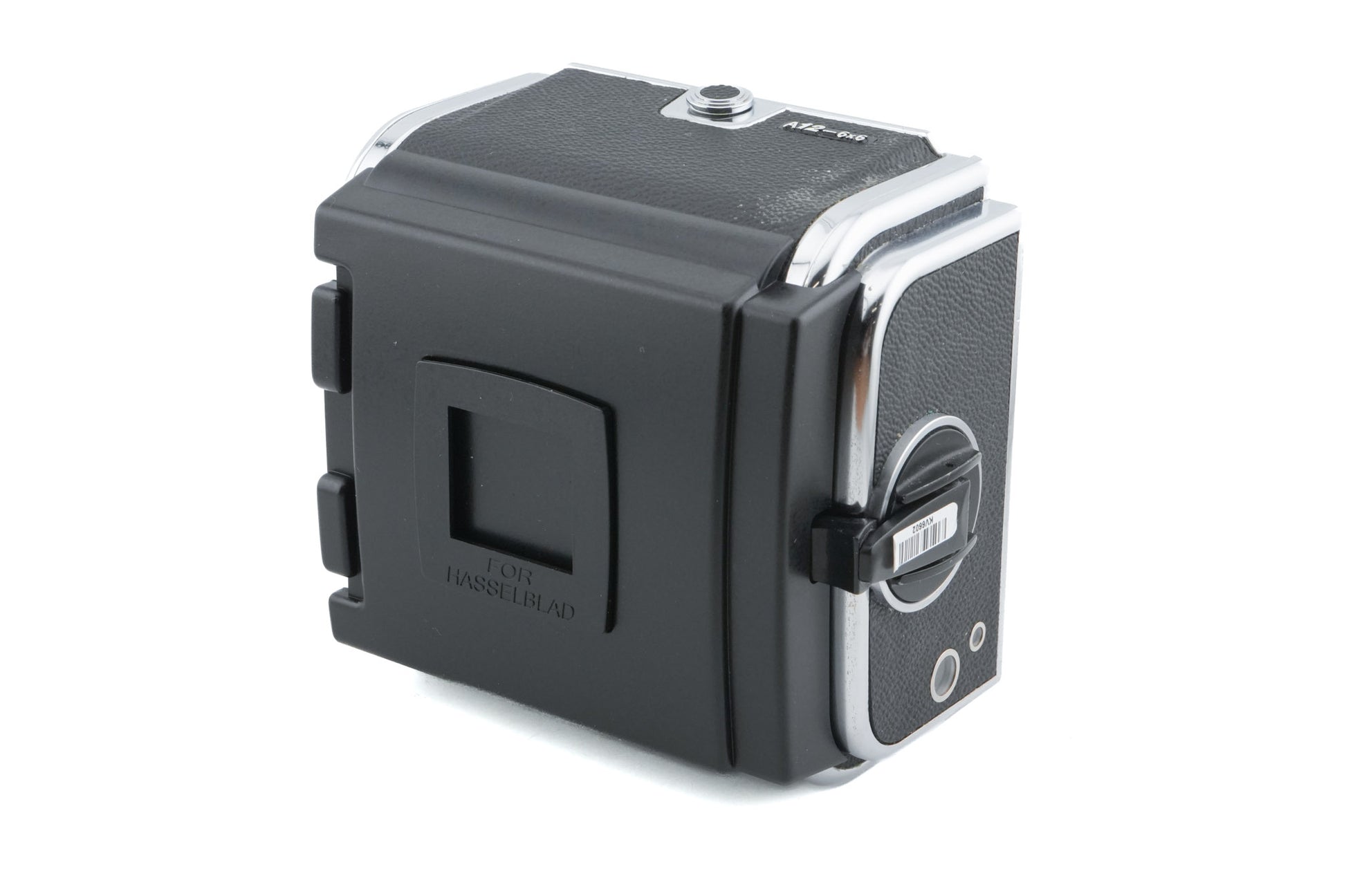 6x6 120 roll film magazine made for the Hasselblad V system medium format cameras introduced by Hasselblad in 1985. A12N ("New") is not a factory designation but one that seems to be in general use to differentiate the early and later versions of the A12. Several changes were made both internally and externally. Most noticeably the change from two spool-holders to only one, the number "12" written on the release button, and the "Made in Sweden by Victor Hasselblad" on the side. There is also a variant available with the text "A12–6x6" instead of a number on the release button. In 1997 the magazines were fitted with a built-in dark slide holder on the back. Metal body available in silver and black (30213).