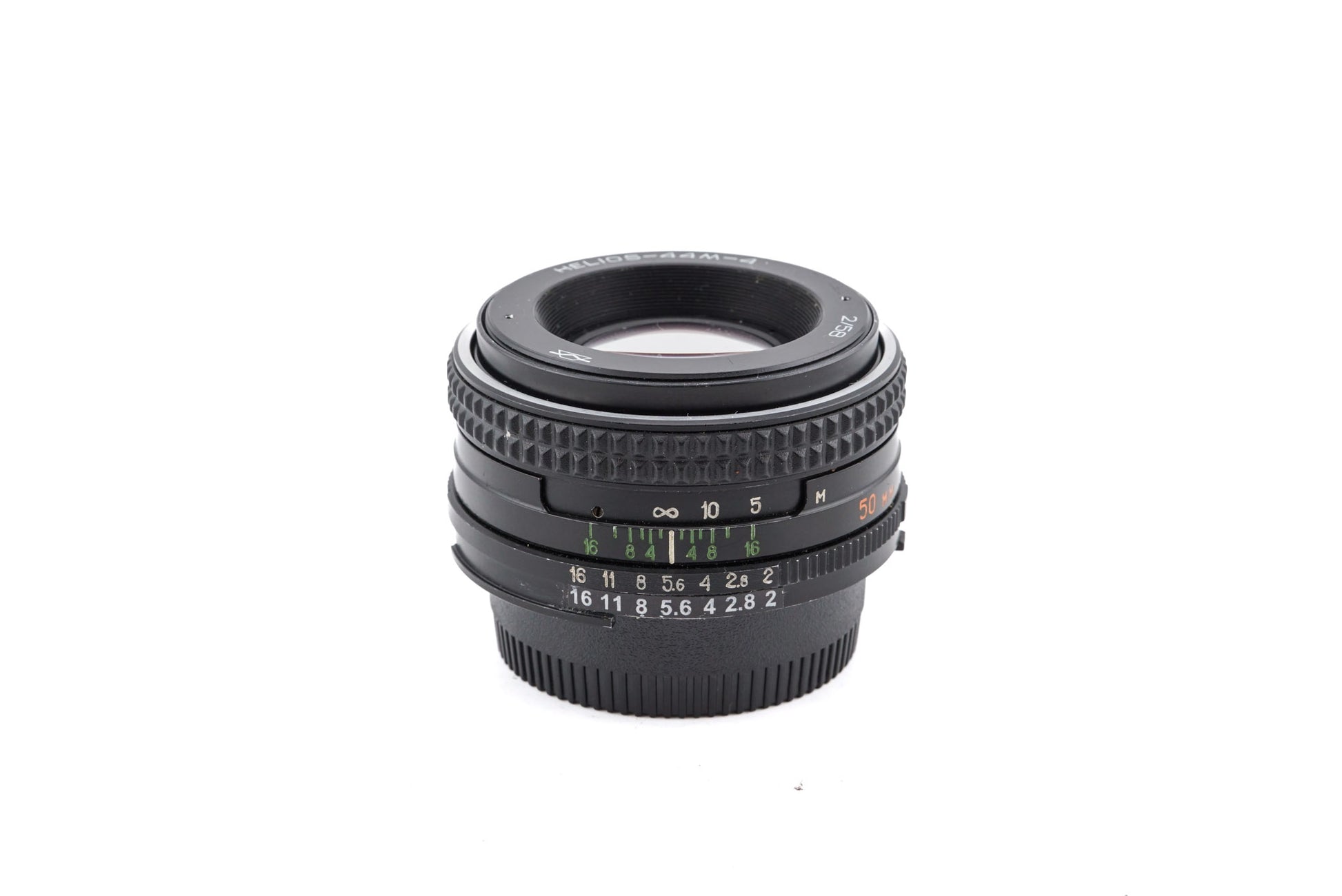 Manual focus normal lens for F-mount SLR cameras made in the Soviet Union. It does not have a filter thread. Metal body available in black.