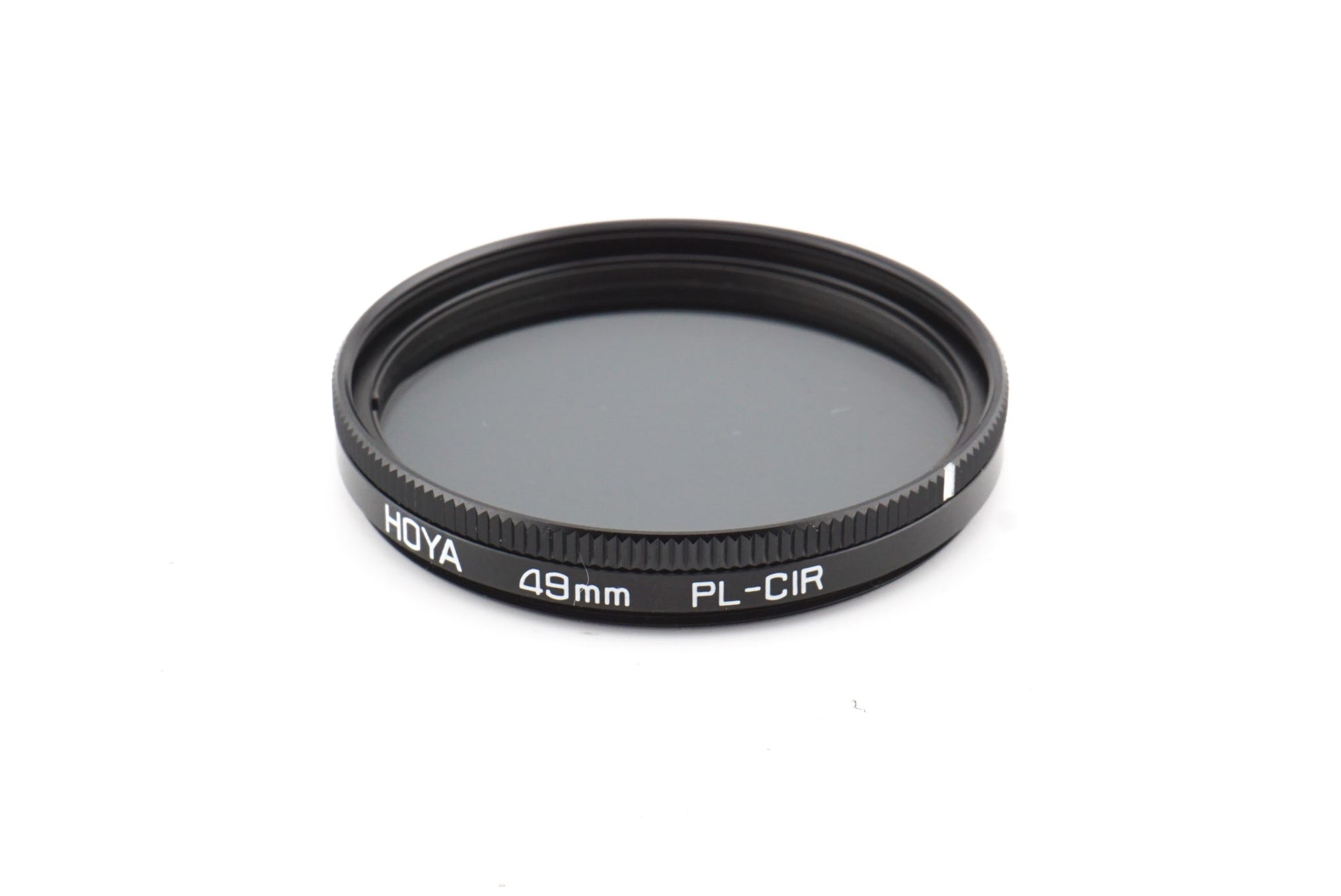 Circular polarizing filter for lenses with 49mm filter threads made by Hoya. Reduces glare in reflections and provides richer colors. Metal body available in black.