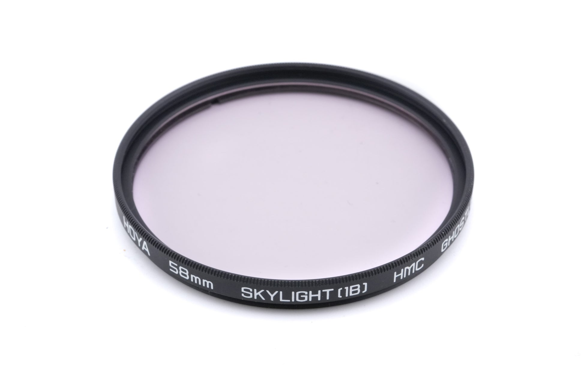 Ghostles skylight filter for lenses with 58mm filter threads made by Hoya. It has a slightly purple coloring. Metal body available in black.