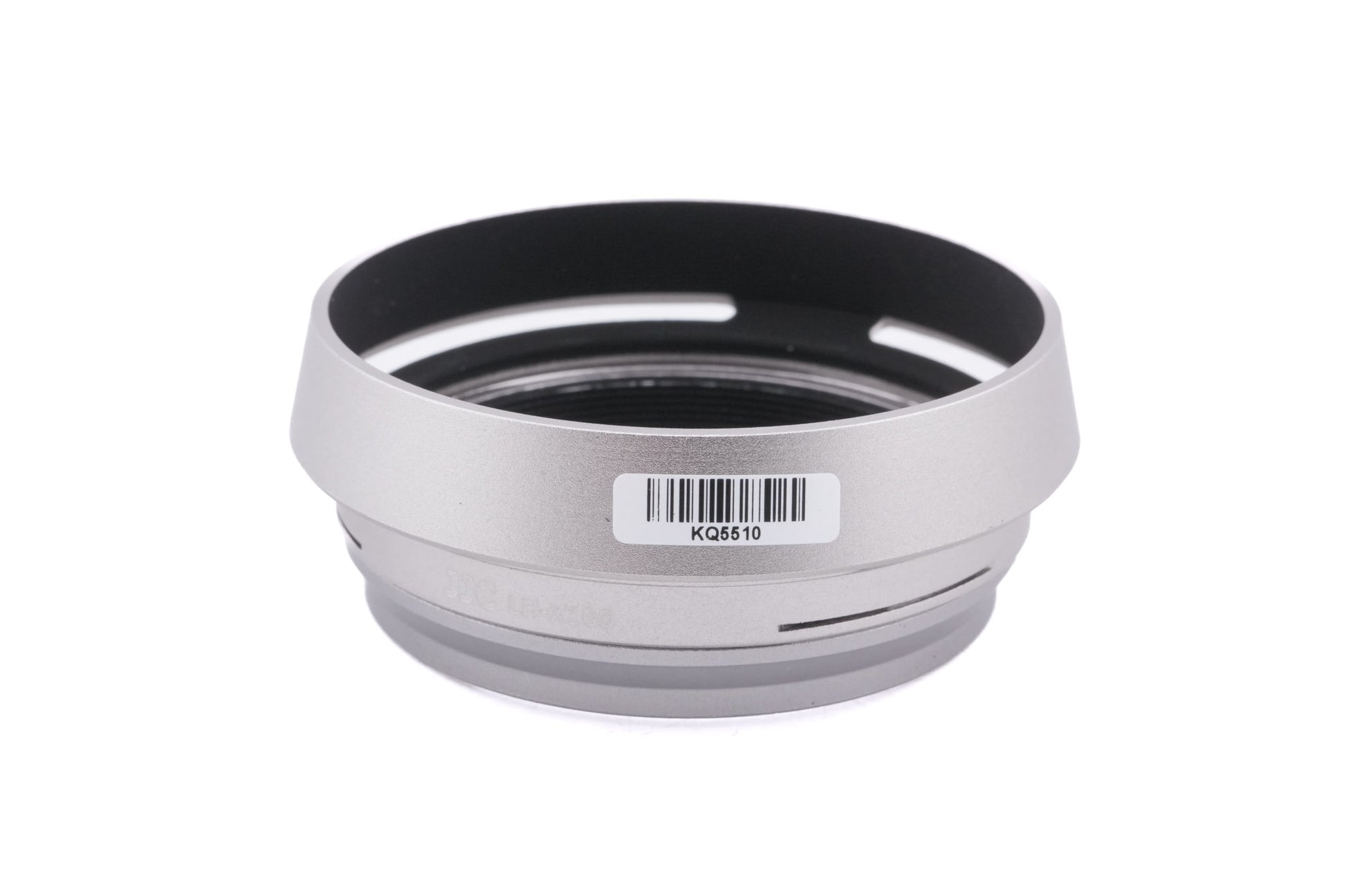 Vented lens hood made by JJC for lenses on the Fujifilm X70, X100, X100V, X100VI, X100S, X100F, and X100T cameras. Plastic body available in silver.