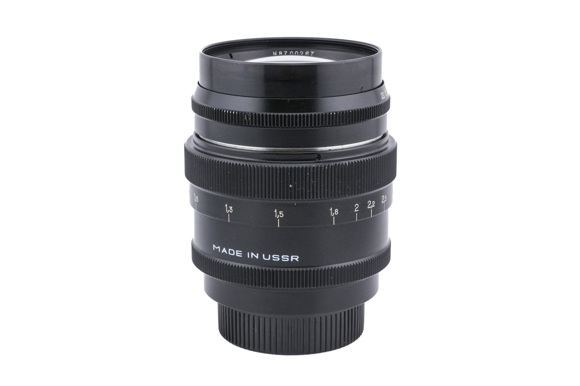 Manual focus telephoto lens made for M39 screw mount rangefinder cameras manufactured in the Soviet Union. Metal body available in black and silver.