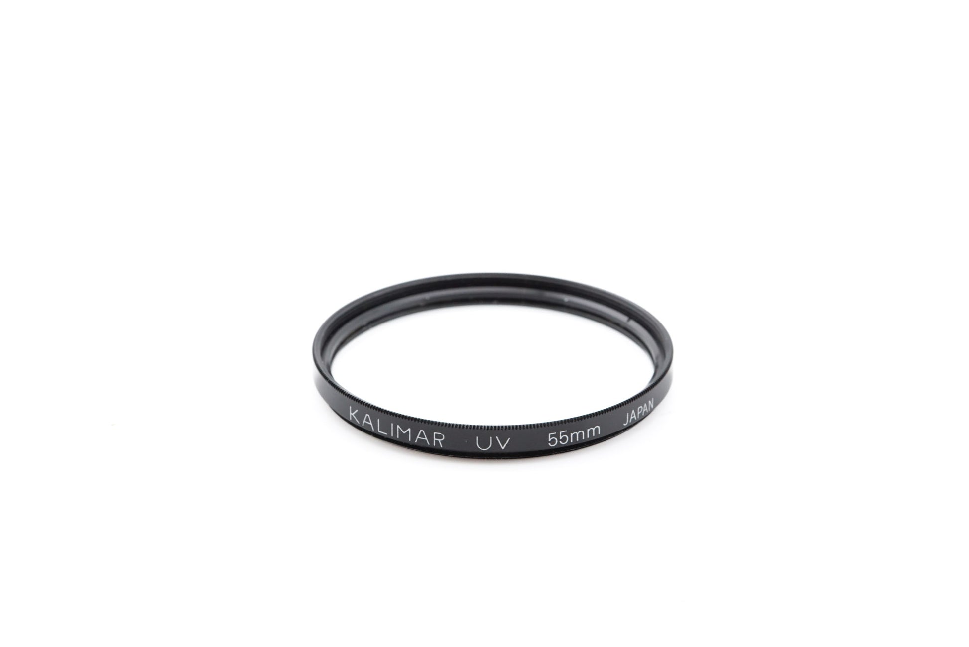 UV filter made by Kalimar for all lenses with 55mm filter threads. Metal body available in black.