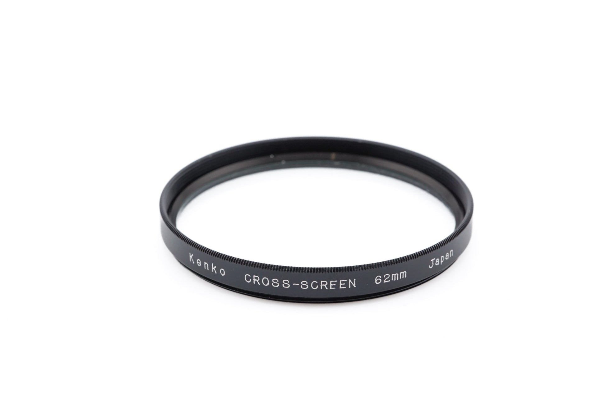 Cross-screen filter made by Kenko for all lenses with 62mm filter threads. Has vertical and horizontal lines and creates soft flares of light in the image. Makes the highlights glow in a cross-shaped pattern. Metal body available in black.