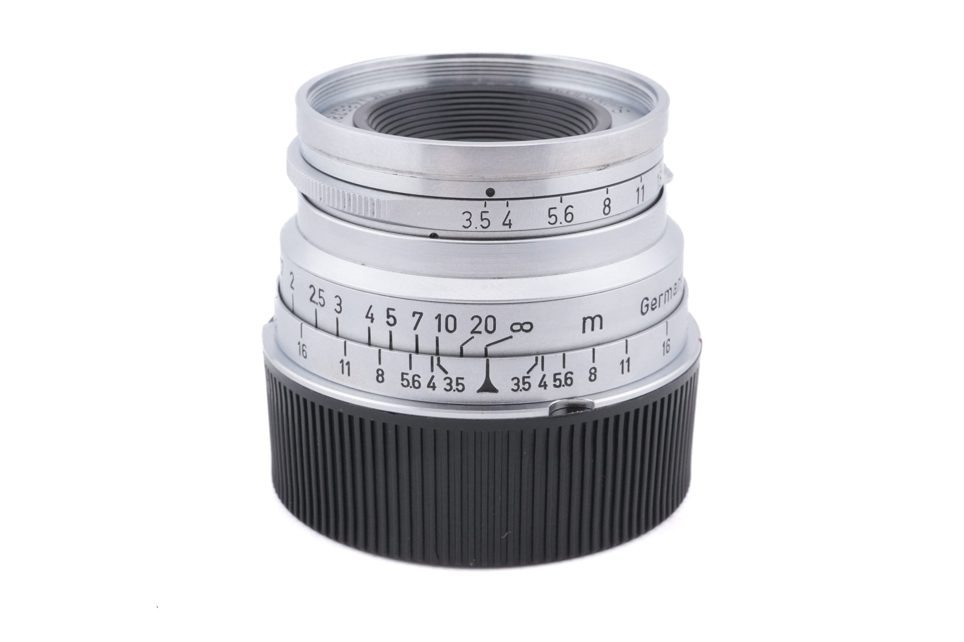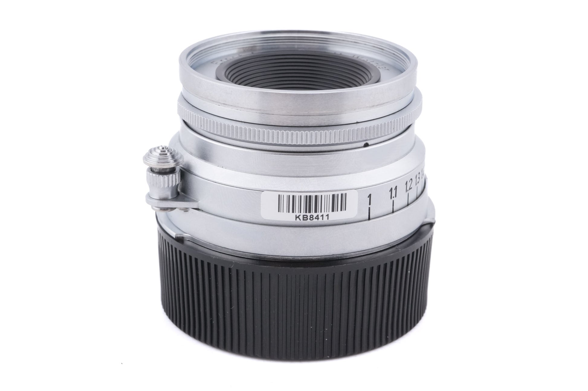 Manual focus wide-normal lens made for LTM / M39 mount 35mm rangefinder cameras by Leica. There are variants that use slip-on A36 filters and variants that use 39mm screw-in filters. Metal body available in silver.