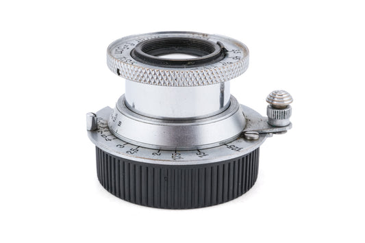 Manual focus normal lens made for M39 / LTM mount rangefinder cameras by Leica starting in 1930. This collapsible lens was the standard for most screw mount Leicas and is derived from the fixed lens found on the Leica I. Metal body available in silver.