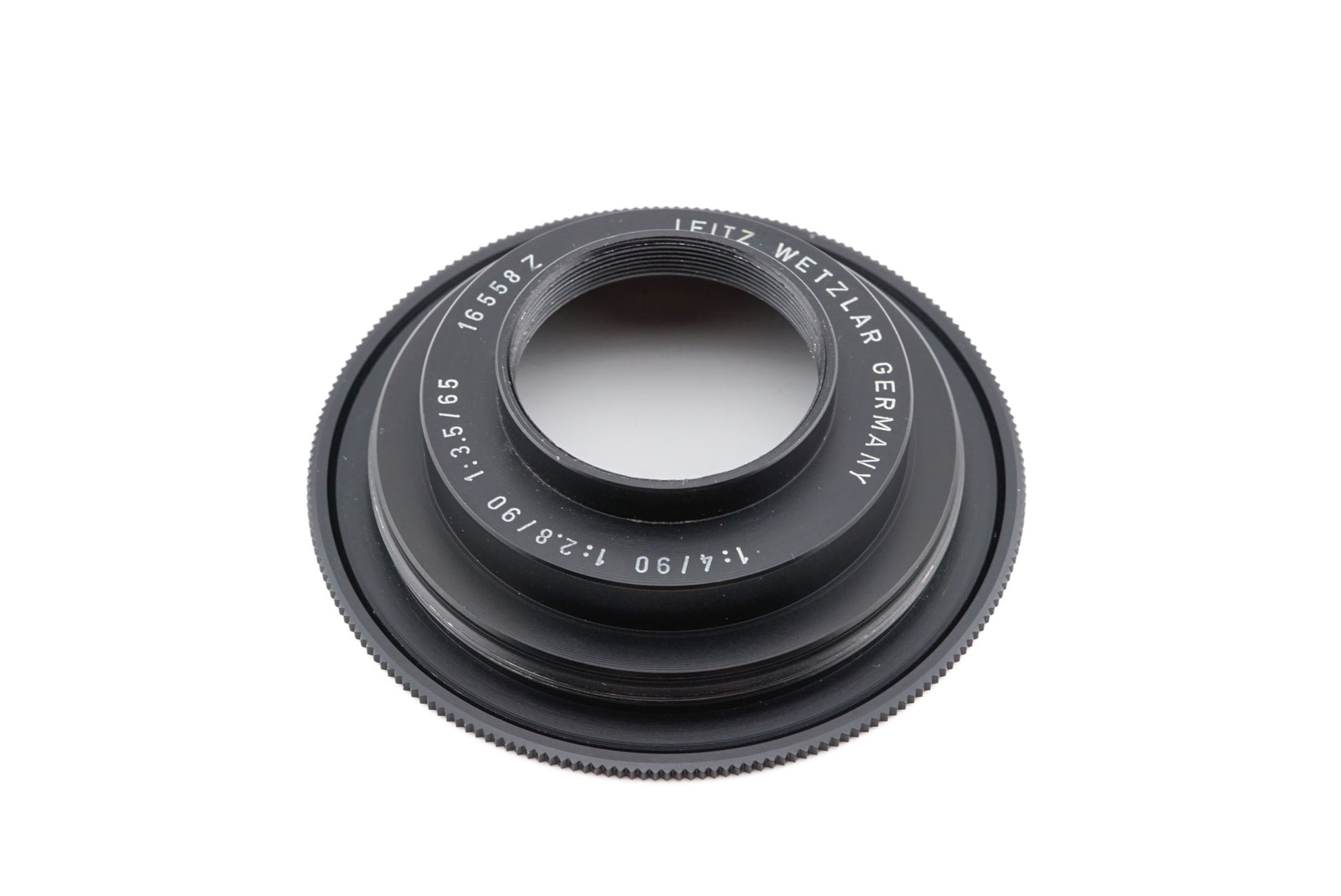 Lens adapter used for the Bellows II released by Leica. Designed to be used with 90mm f4, 90mm f2.8, or 65mm f3.5. Metal body available in black.