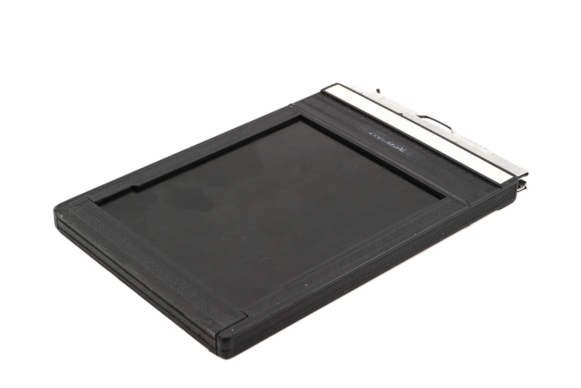 4x5" sheet film holder made by Lisco. Each holder can hold two sheets of film, one on each side. Plastic body available in black.