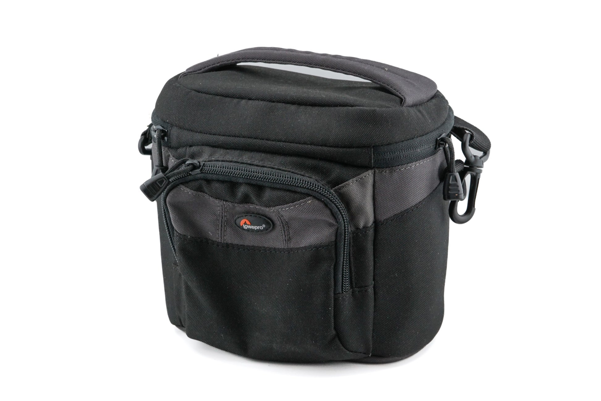Camera bag made by Lowepro for mirrorless cameras or small DSLRs. Fabric body available in black/grey.