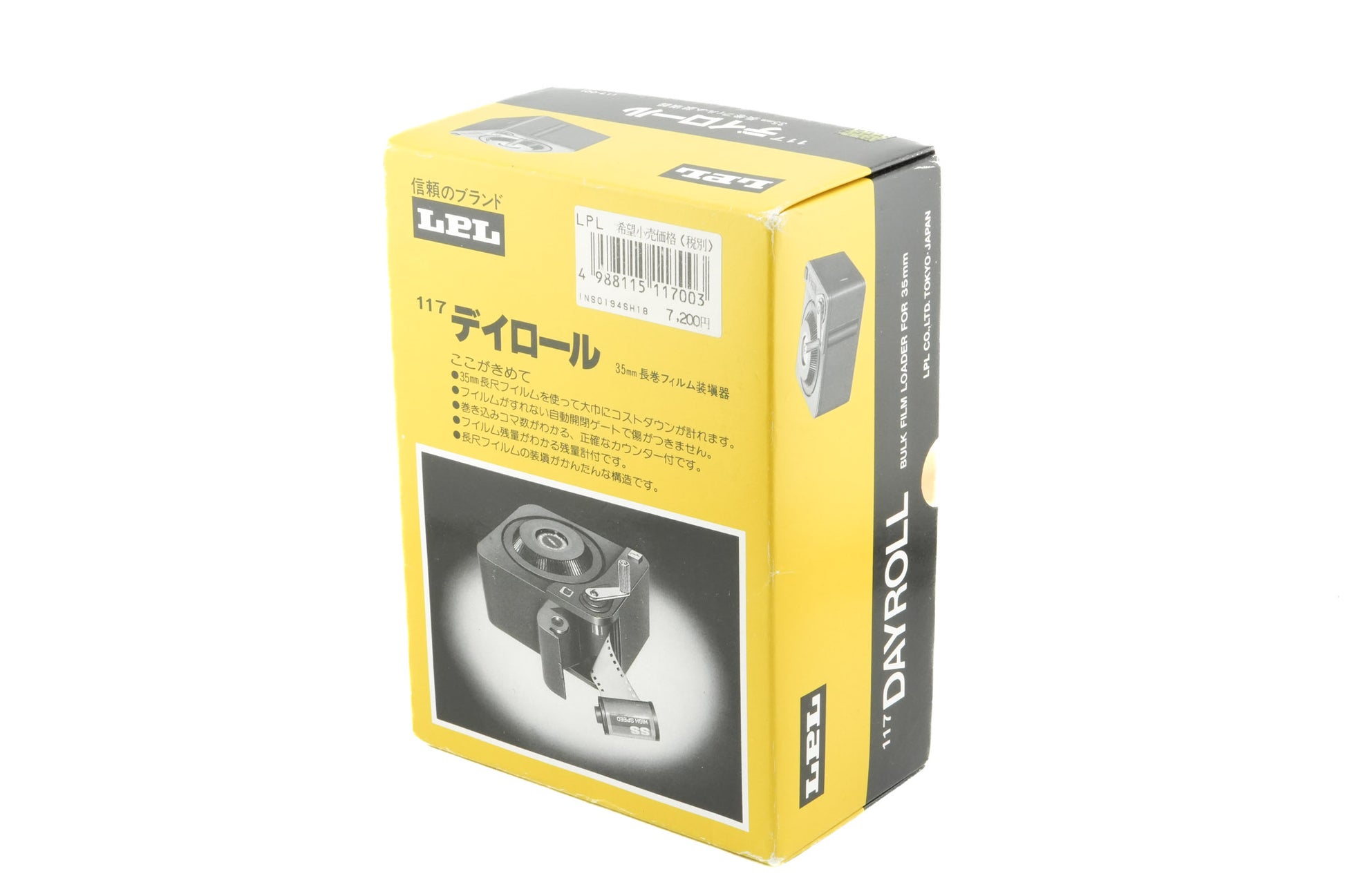 Daylight bulk film loader for 35mm film made by LPL. Plastic and metal body available in black.
