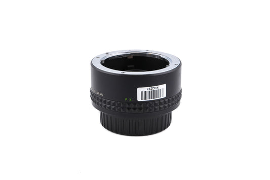 2x tele-converter for Pentax K-mount 35mm SLR cameras made by Makinon. Metal construction available in black.