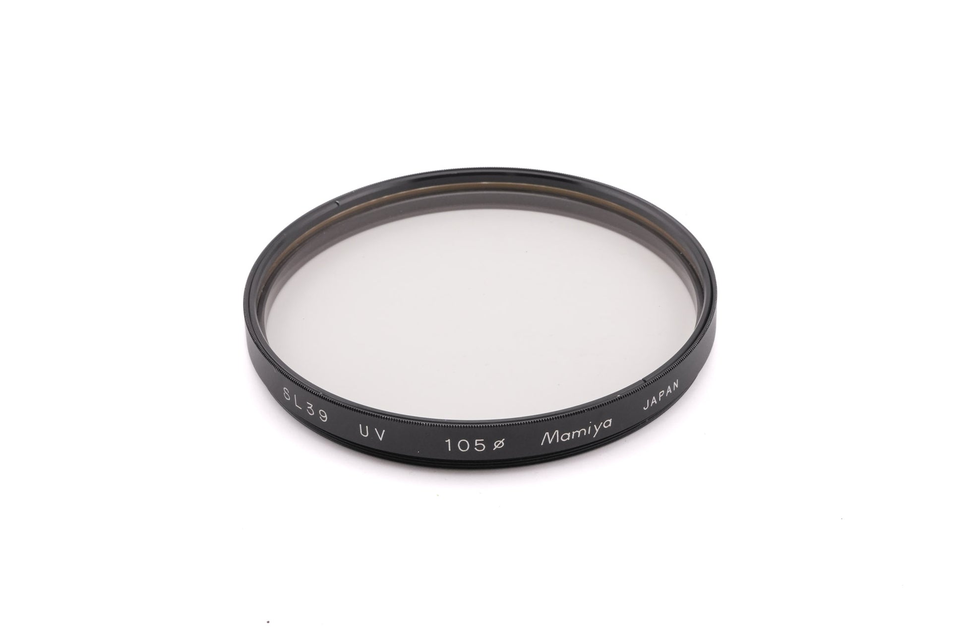 Clear UV filter made by Mamiya for all lenses with 105mm filter threads. Metal body available in black.