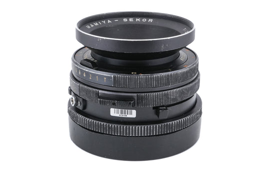 Manual focus normal lens made for RB67 series 120 SLRs by Mamiya starting in 1970. It gives the equivalent focal length of 63mm on 35mm/full frame. Metal body available in black.