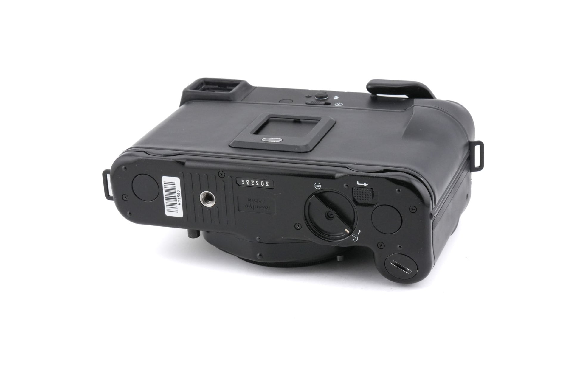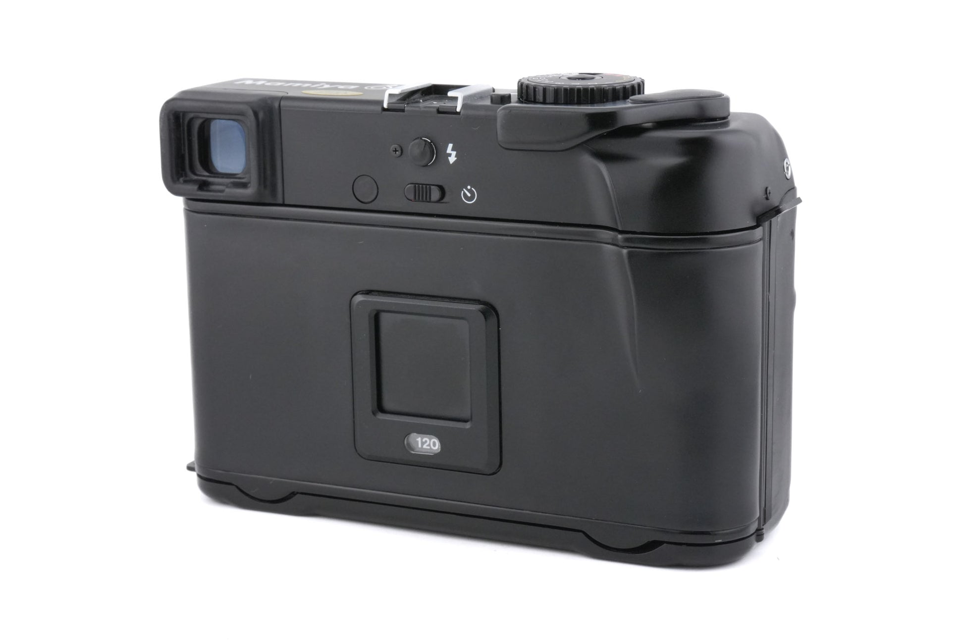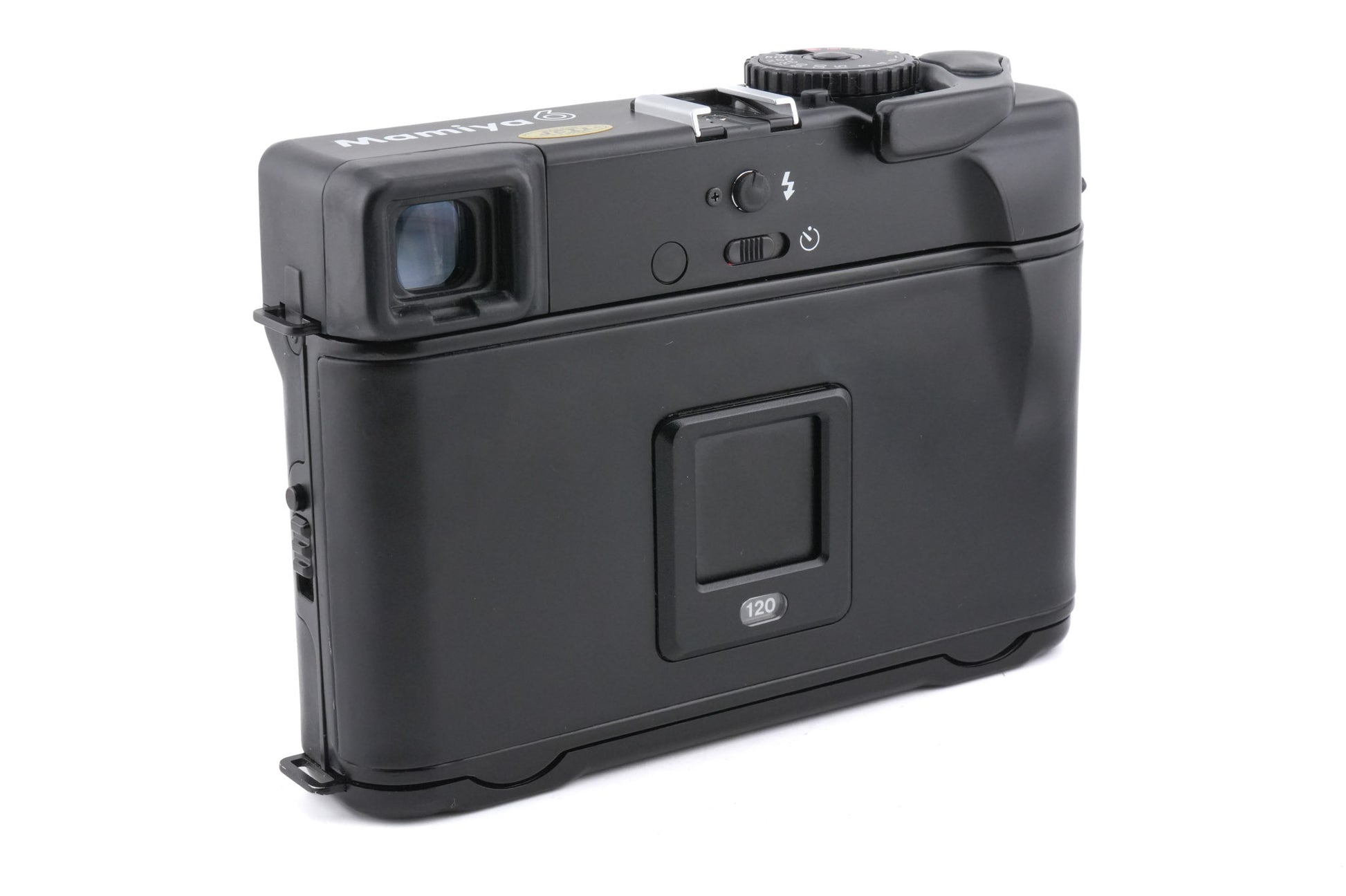 Manual focus 6 mount 120/220 rangefinder camera released by Mamiya in 1989. It exposes 12 6x6 images on one roll of 120 film. The lens and bayonet can collapse into the body for easier transport. Only three lenses were made for the system. Plastic body available in black.