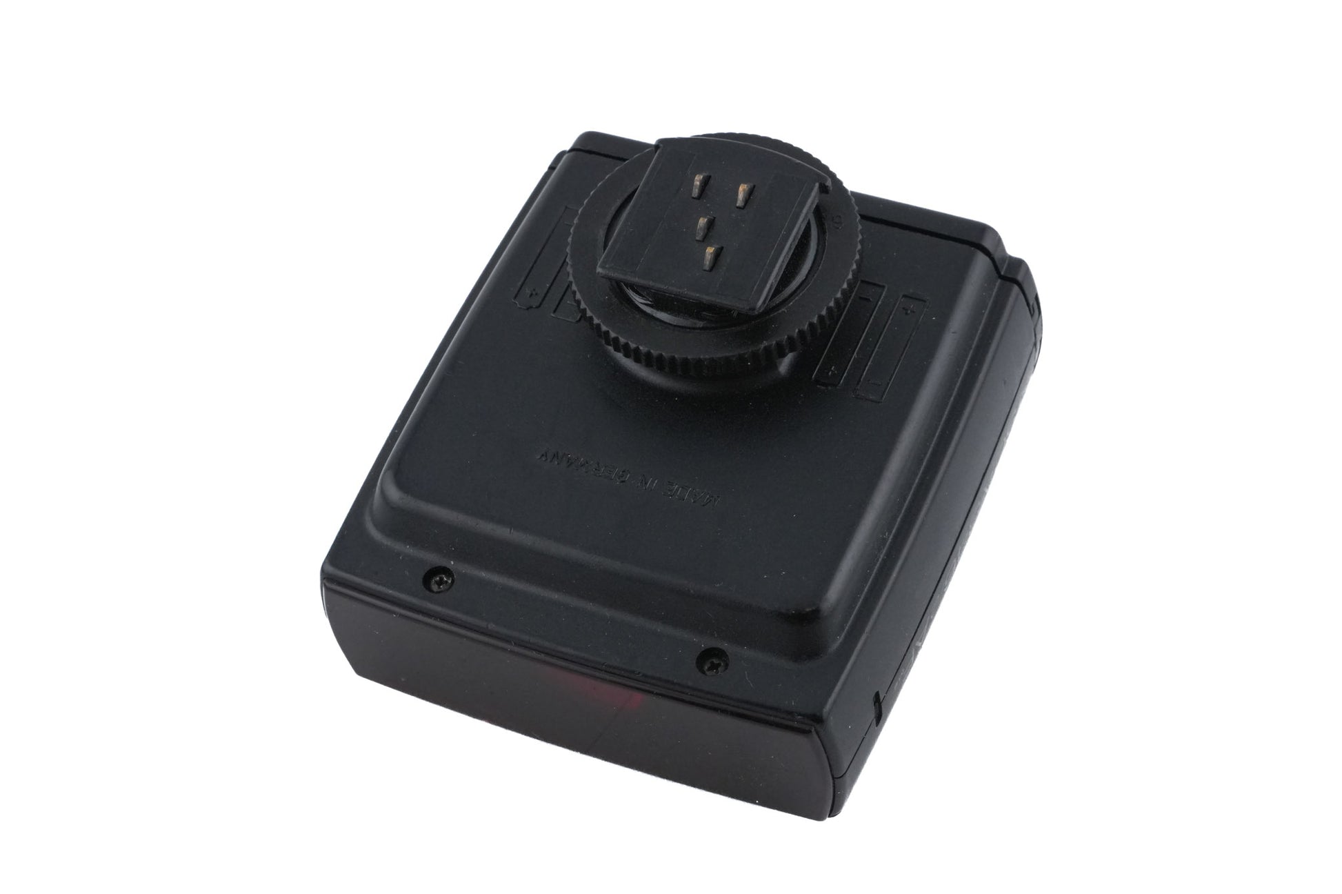 Flash adapter for Nikon F-mount 35mm SLR cameras. Can be used with SCA 300 system flashes.