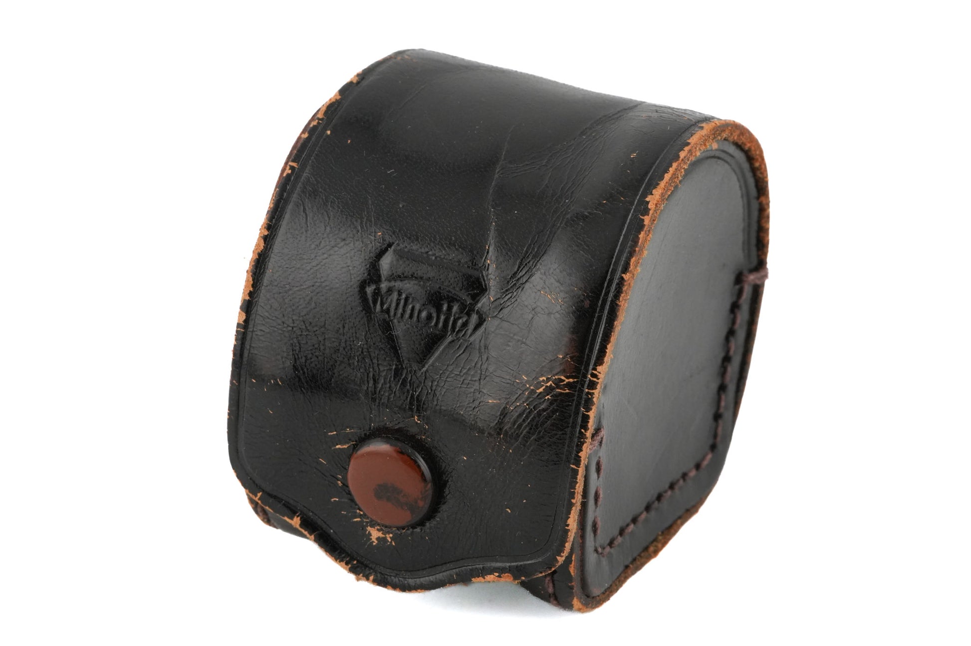 Lens hood made by Minolta for TLRs with Bay 1 accessory bayonets. Metal body available in black.