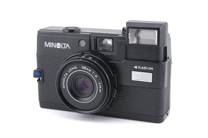 Zone focus 35mm point-and-shoot camera released by Minolta in 1984. It has 3 aperture settings: sunny, cloud/sun, and cloudy. It also has a pop-up flash. Plastic body available in black.