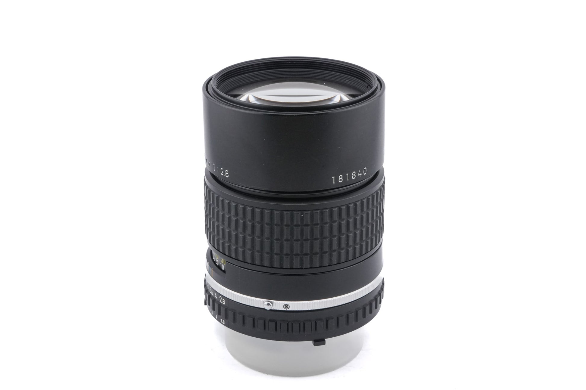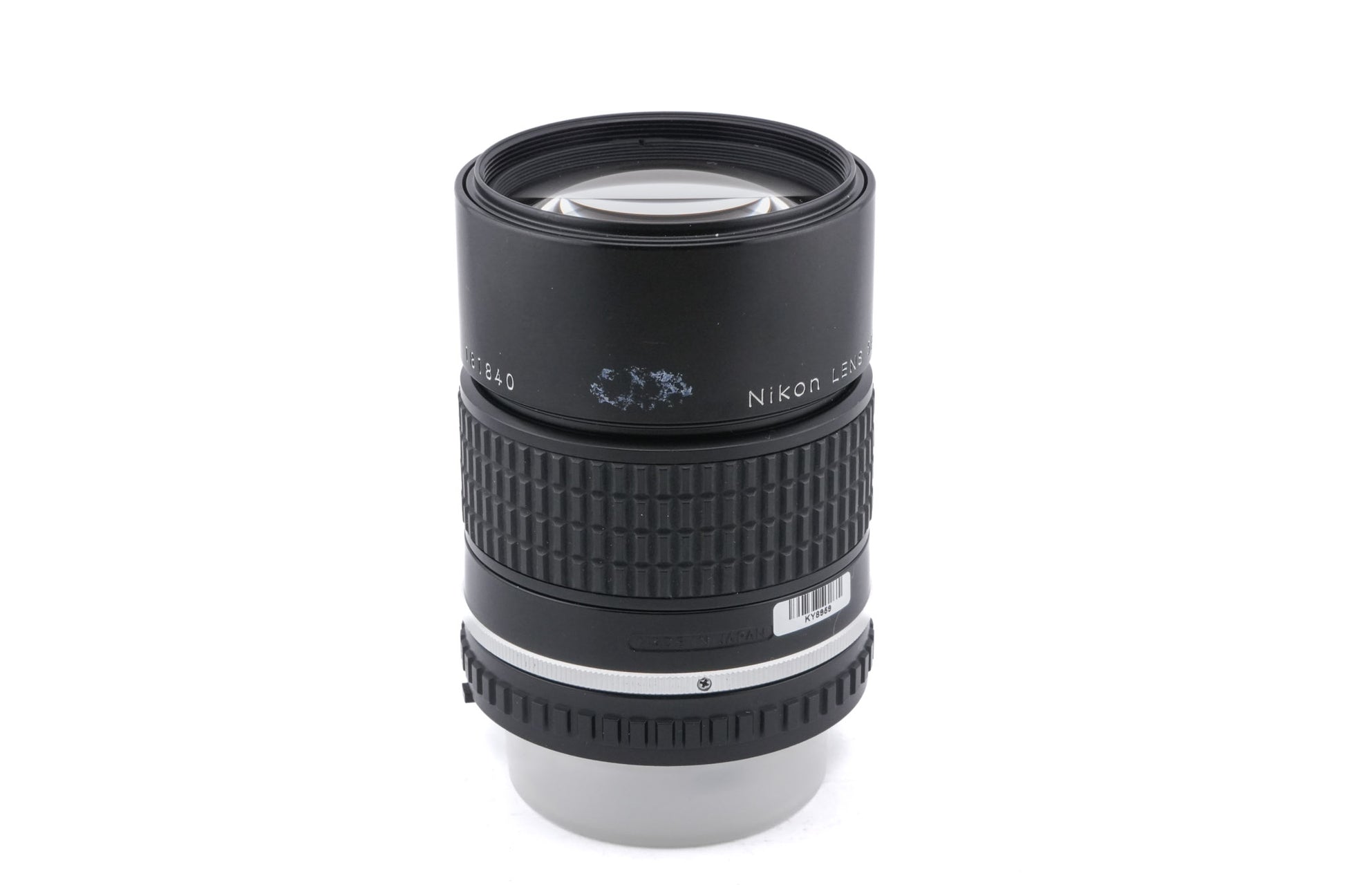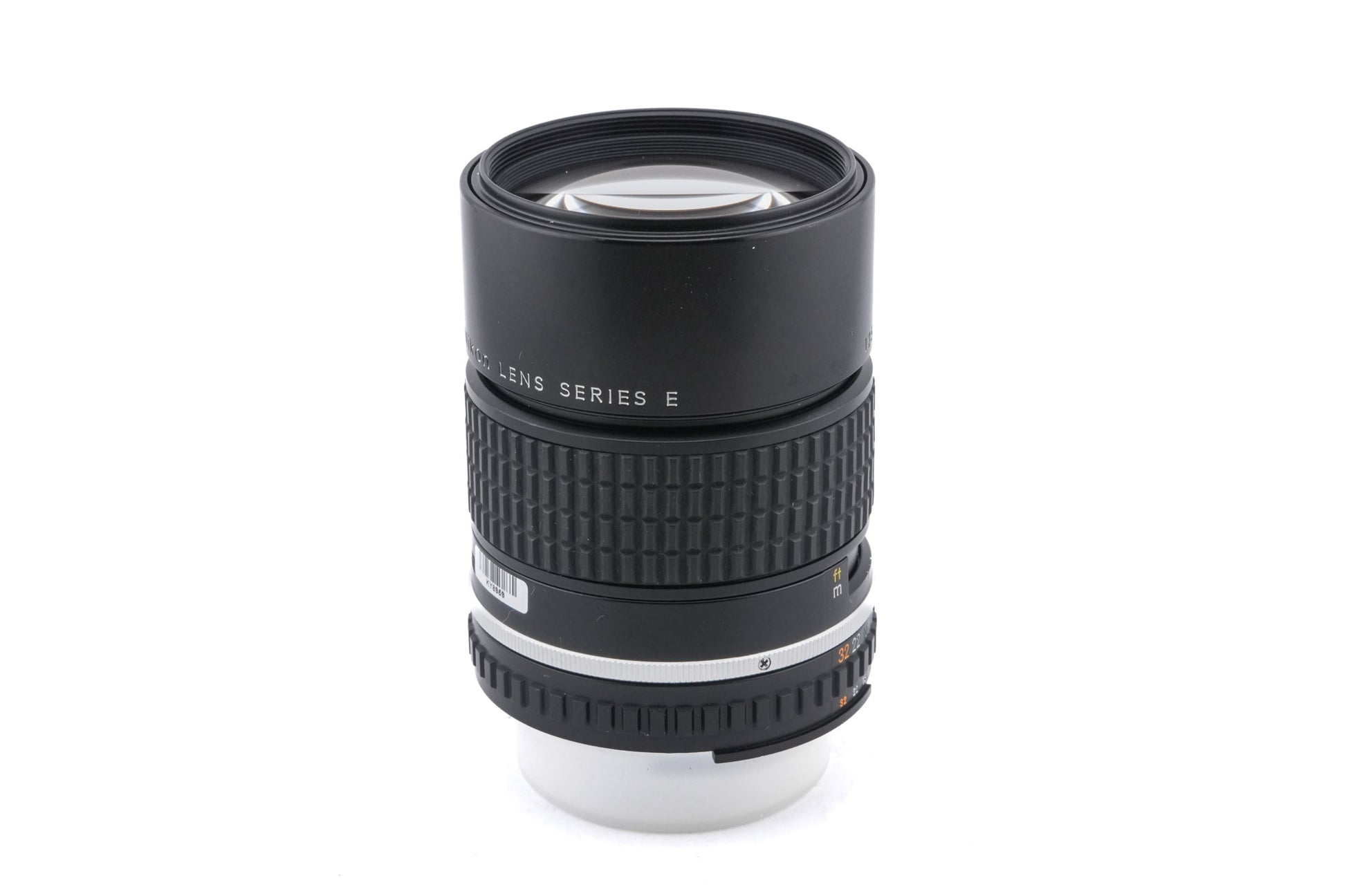 Manual focus telephoto lens made for F-mount 35mm SLR cameras introduced by Nikon in 1981. It is part of Nikon's E series of lenses. It has a built-in lens hood. Metal body available in black.