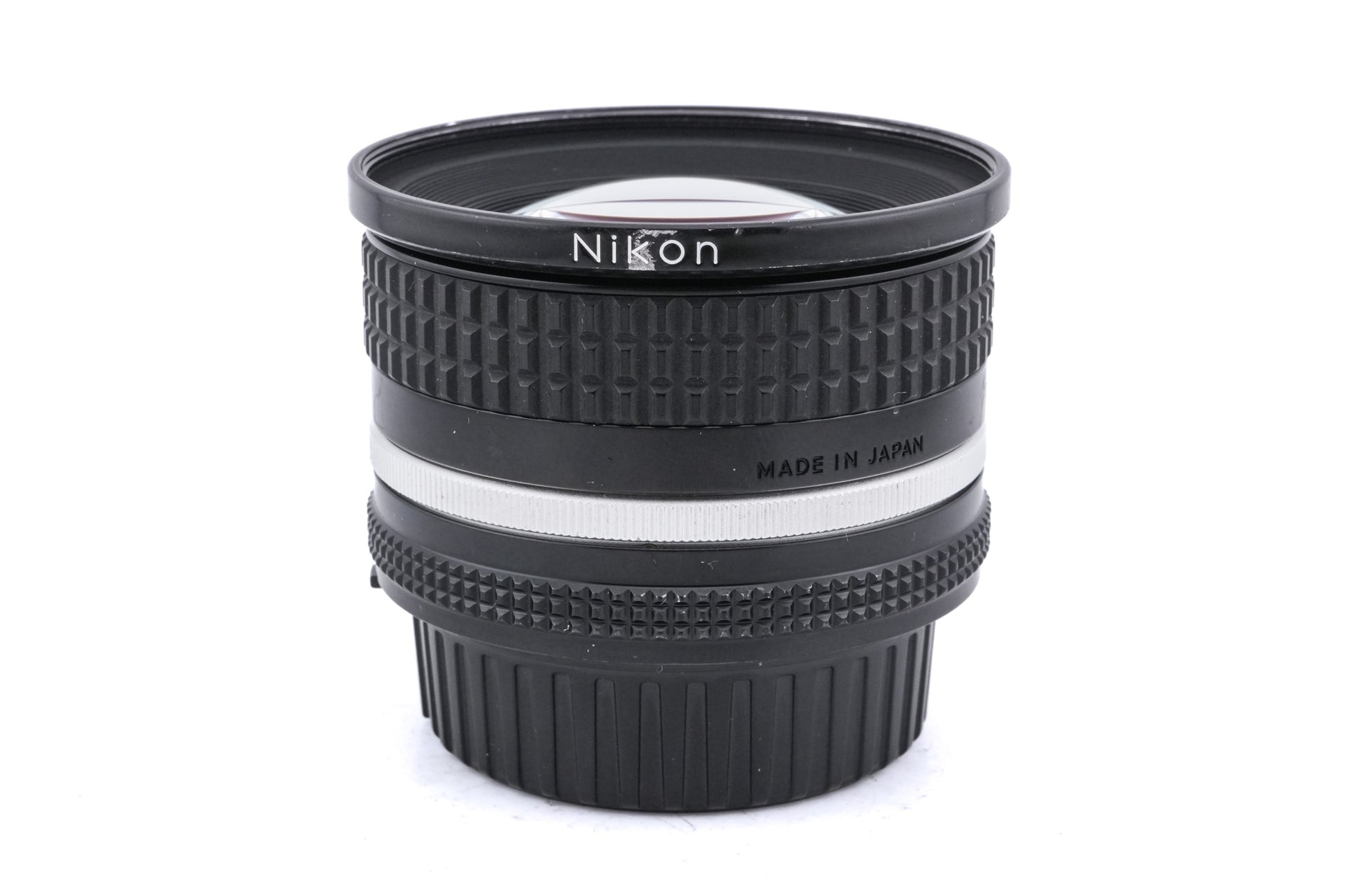 Manual focus wide-angle lens for F-mount 35mm SLR cameras released by Nikon in 1984. Metal body available in black.