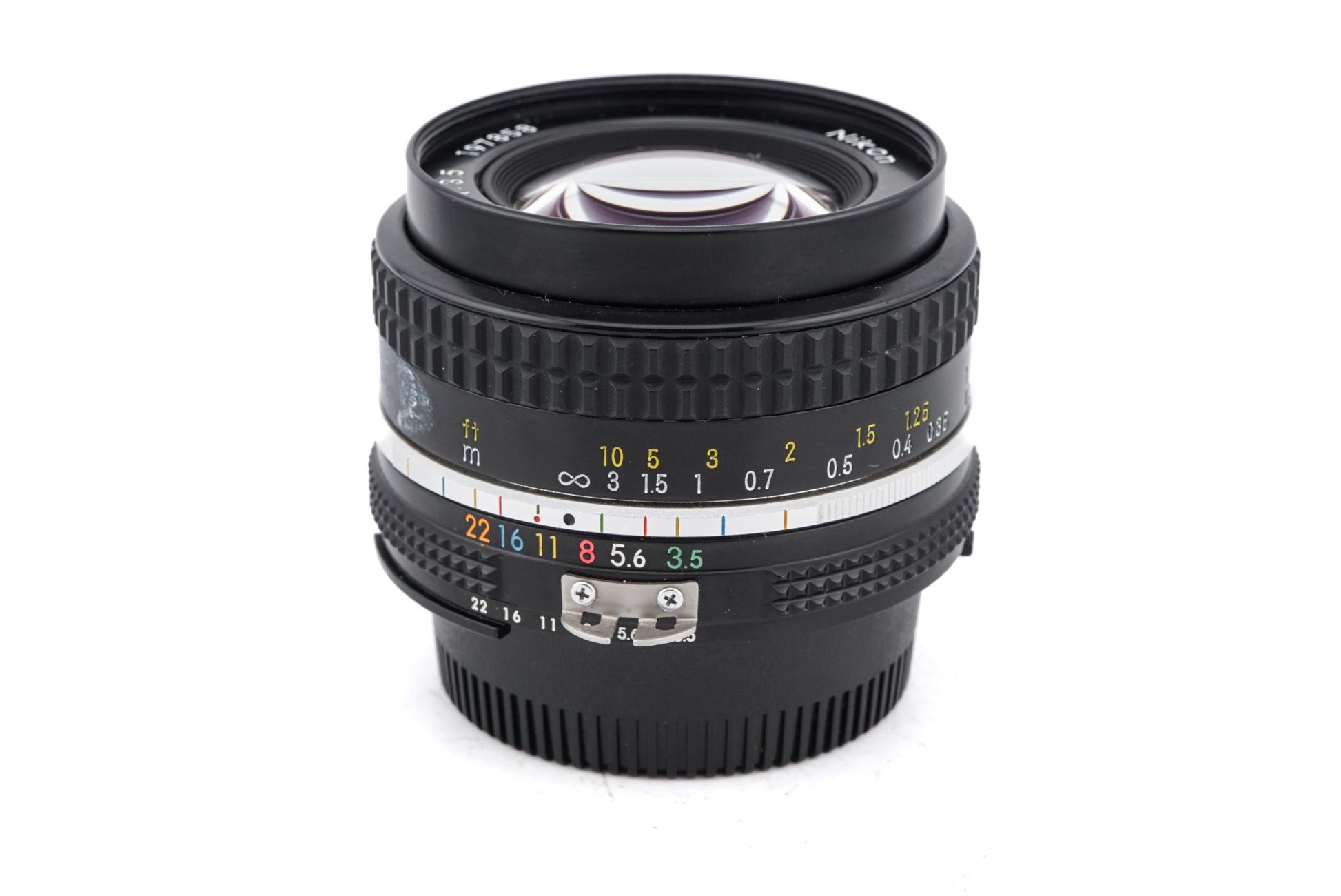 Manual focus wide-angle lens made for Nikon F mount SLR cameras by Nikon. It has the AI ridge and bunny ear metering prong but no AI-S indent, so it will meter properly on all manual Nikon cameras but cannot be used with the advanced program modes of later models. Metal body available in black.