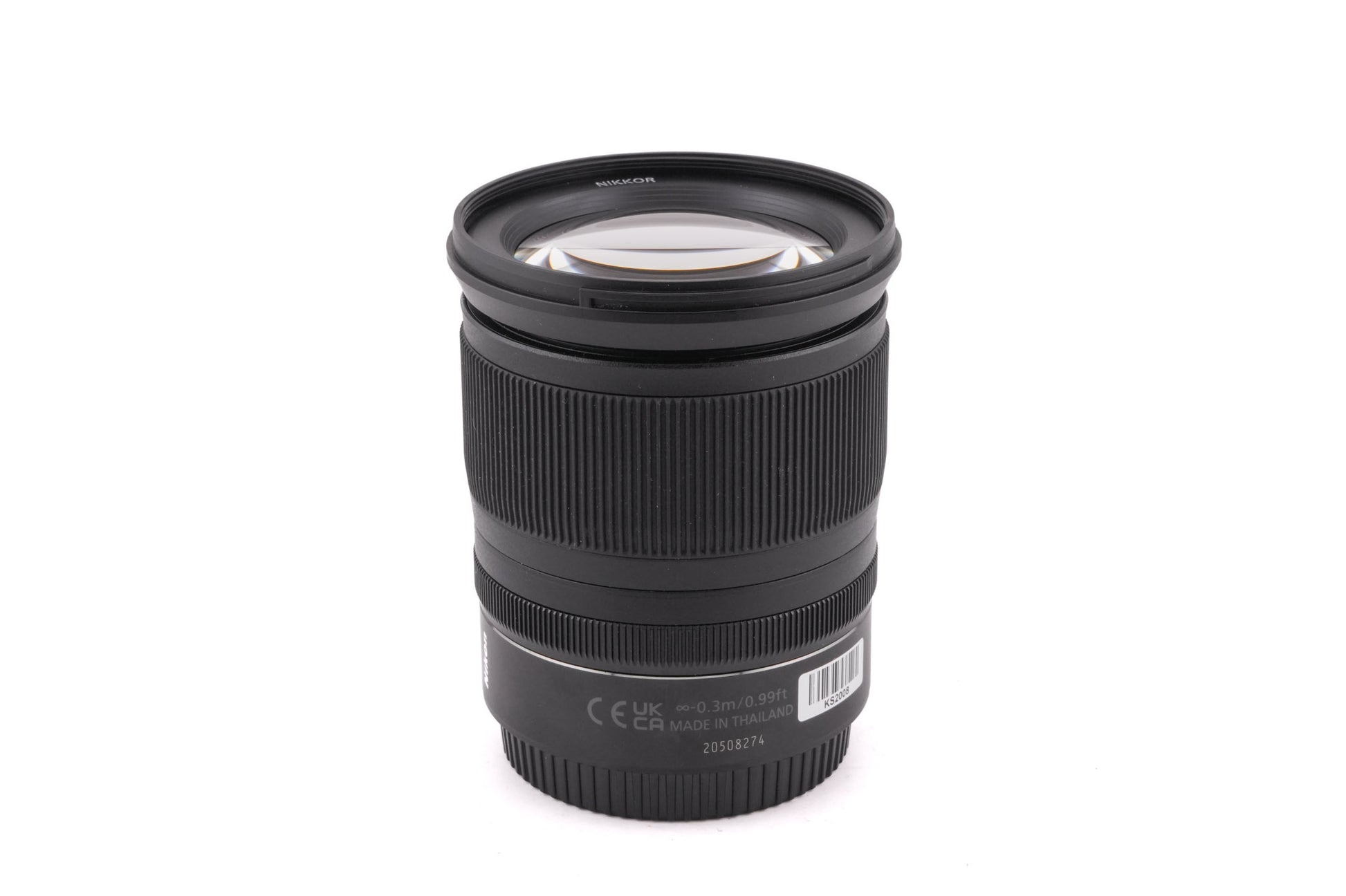 Autofocus zoom lens made for Z-mount mirrorless cameras by Nikon. Plastic/metal body available in black.