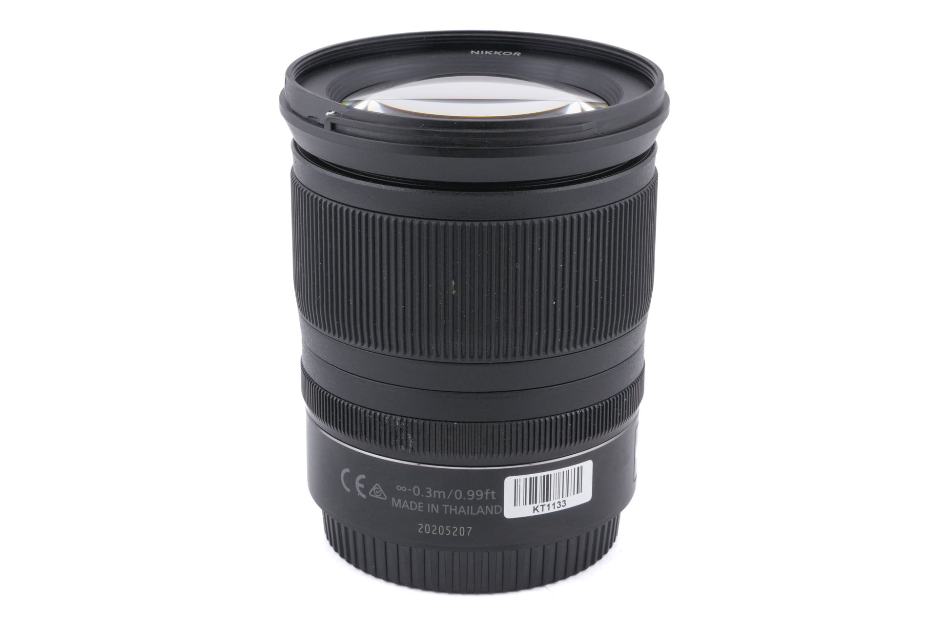 Autofocus zoom lens made for Z-mount mirrorless cameras by Nikon. Plastic/metal body available in black.