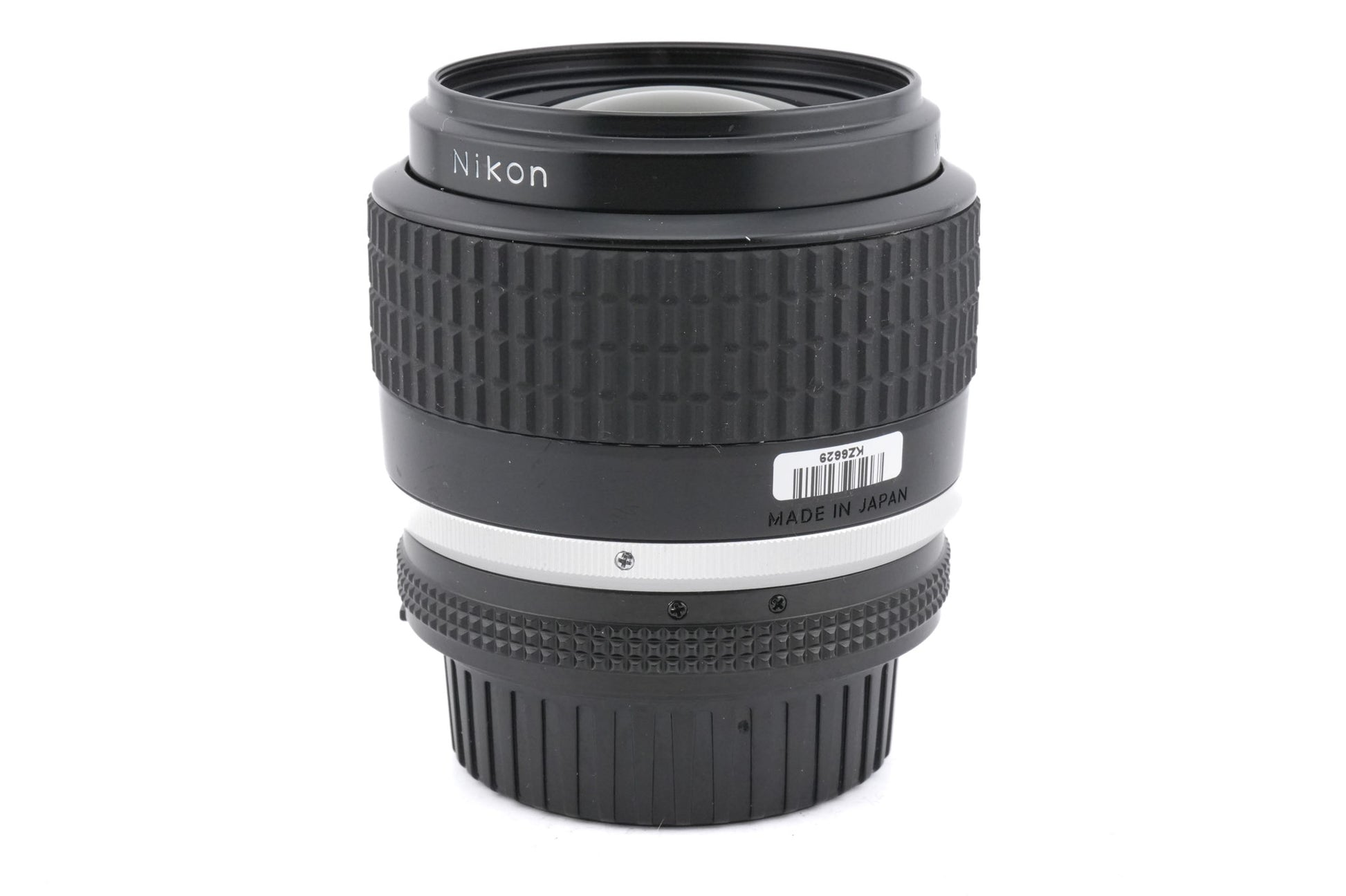 Manual focus wide normal lens made for F-mount SLR cameras by Nikon. It has the bunny ear metering prongs, AI ridge, and AI-S indent so it will meter properly on all manual Nikon cameras and can be used with the advanced program modes of later models. Metal body available in black.
