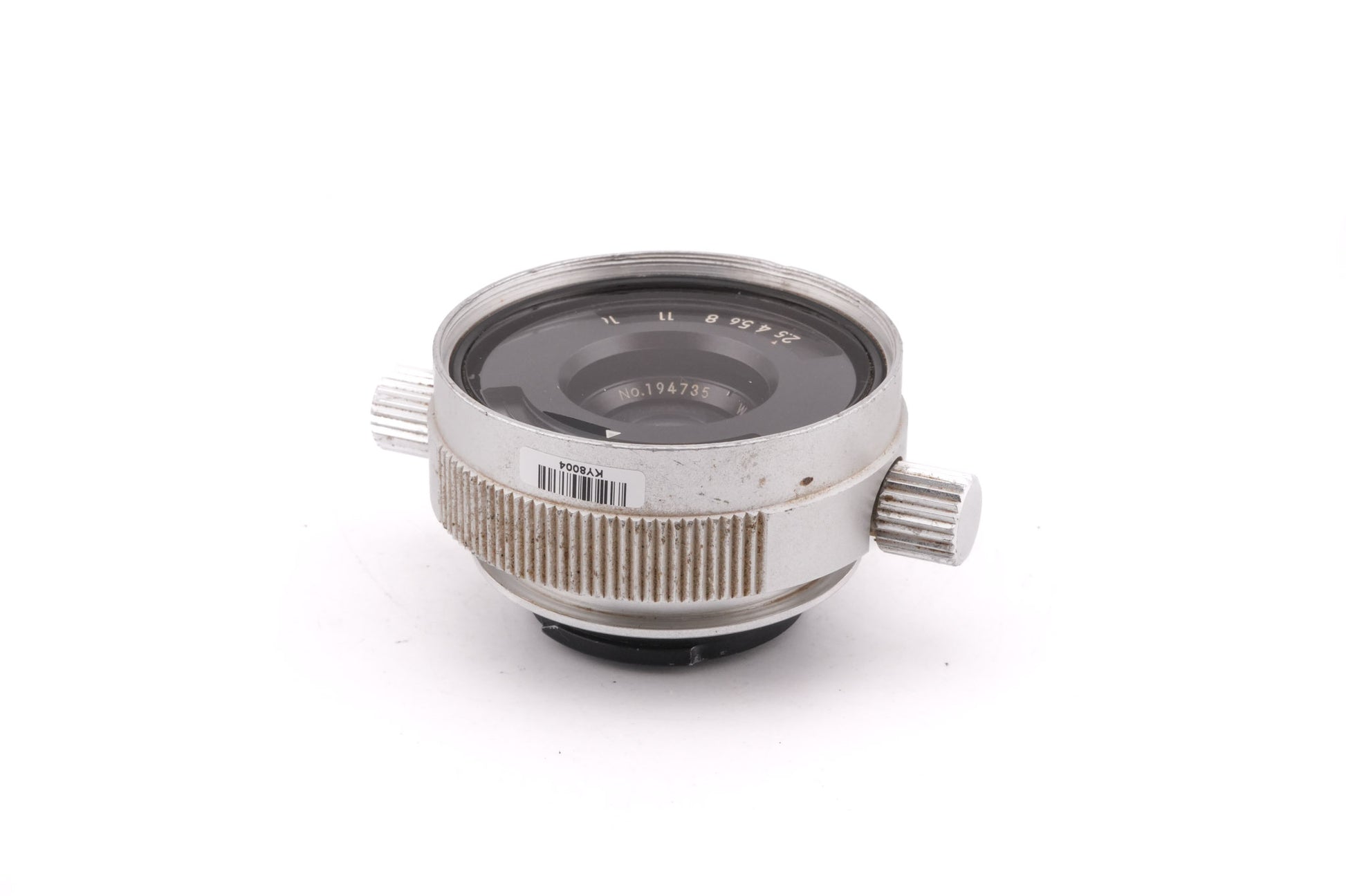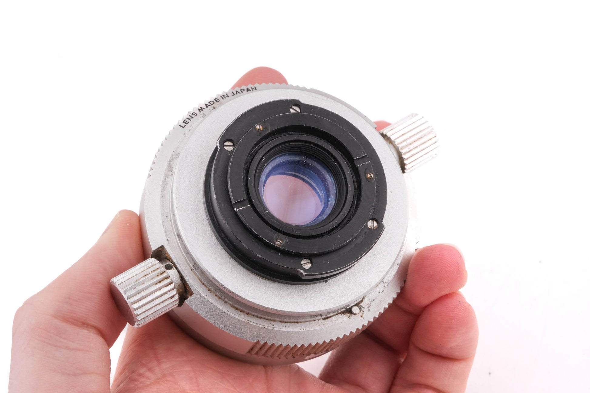 Manual focus wide normal lens made for Nikonos mount 35mm underwater cameras by Nikon. This lens can be used both above and below water. The focal length becomes closer to 50mm when used underwater. Metal body available in silver and black.